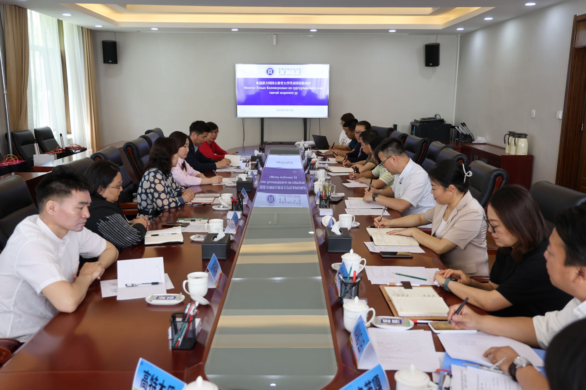 发展规划与学科建设处、招生就业处、教师工作部(人事处)、基础教育学院、体育学院、文学院、数学科学学院、美术学院、学前教育学院和对外合作与交流中心相关负责人员,以及目前在蒙古国国立教育大学攻读学位的教师代表6人参加座谈会,相关部门负责人及工作人员陪同参观校史馆和美术展览。