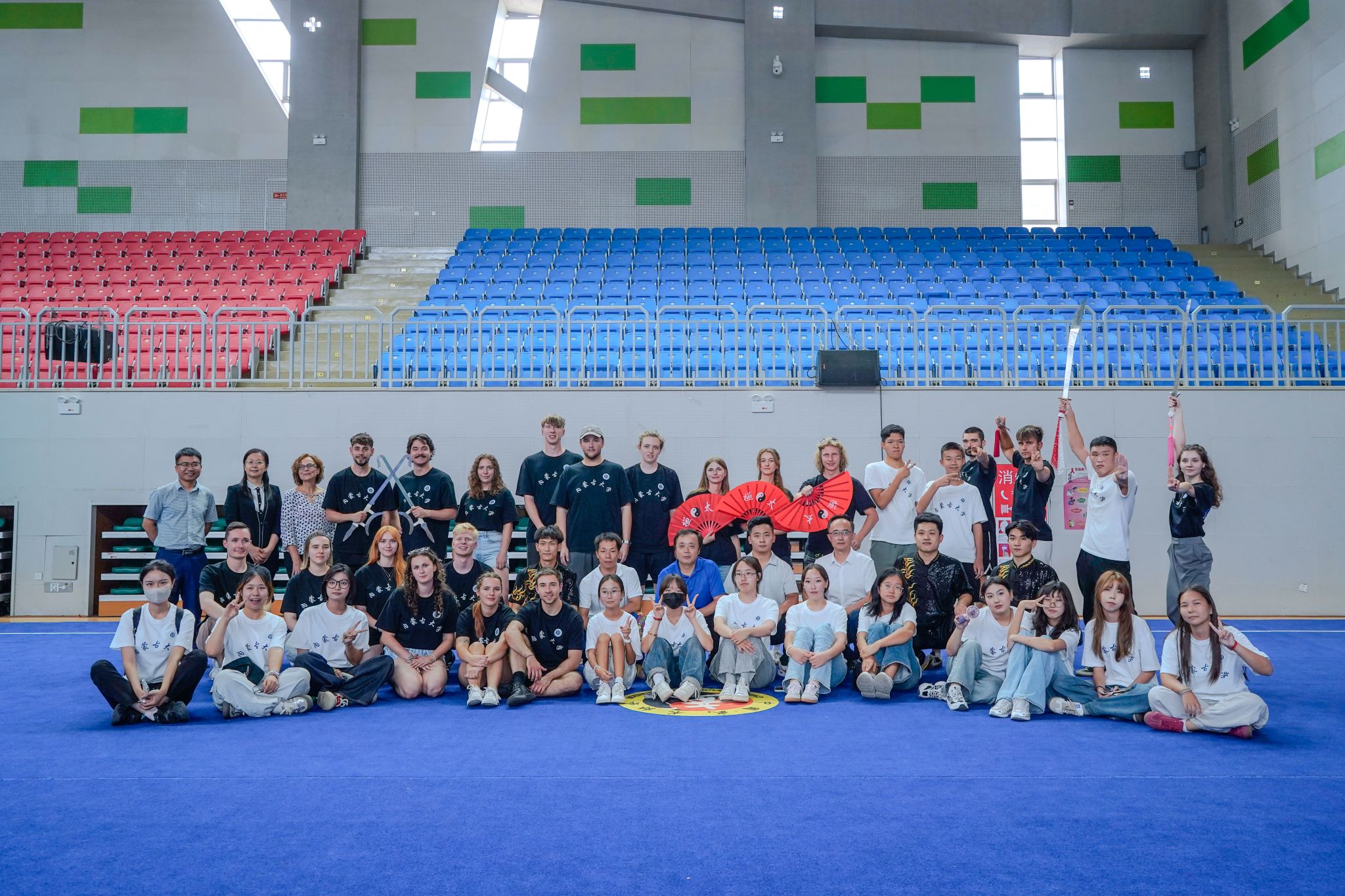 在拳脚间体悟文化精神。体育学院的传统武术体验则让访问团感受到中华文化的力量之美。院长乌日根牧仁与教师王志飞系统解读武术文化后,体育学院学生的一场刚柔并济的武术表演震撼登场。访问团师生被招式中的力道与韵律深深吸引,纷纷向武术专业学生请教剑术技法、腾空翻要领等经典动作。在一招一式的学习中,他们不仅感受到武术的力量美学,更体悟到自强不息、以和为贵的中华传统精神内核。