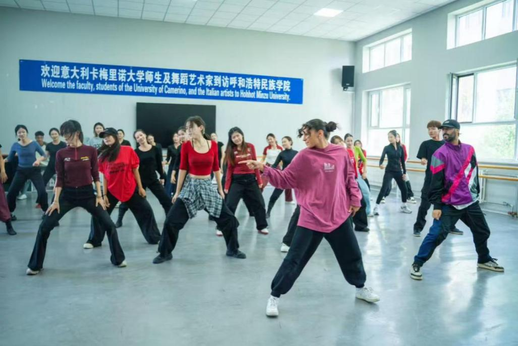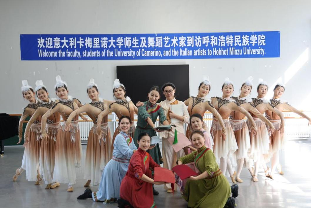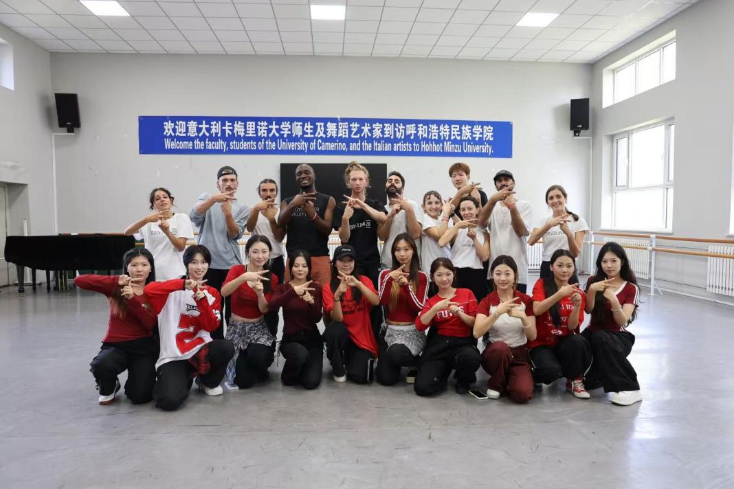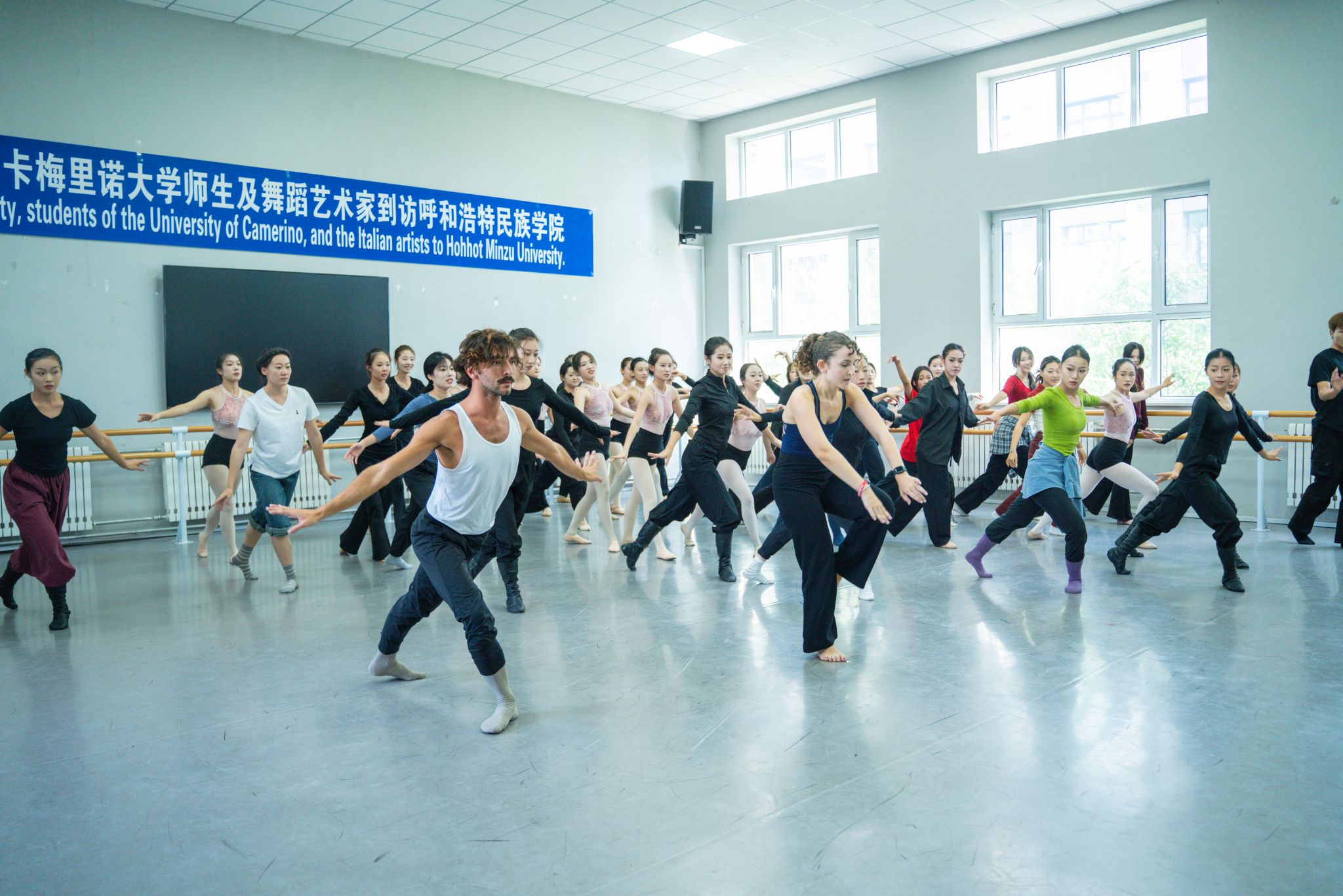 意大利舞蹈专家 “德纳罗・奥罗拉”“比奥萨・玛利亚”“兰波内・埃丽卡”“埃格蒙特・朱莉”“塞拉・米凯莱” 等五位专家为beat365官网师生授课。他们结合意大利舞蹈的特点,通过专业讲解、动作示范和互动教学,深入解析各类舞蹈的表现力与技巧核心。交流尾声,beat365官网音乐与舞蹈学院教师李辉以一段韵味醇厚的蒙古舞表演致谢意方分享,将蒙古族传统舞蹈的独特魅力生动传递。此次交流课生动呈现了中意两国舞蹈文化的独特魅力与精髓,搭建起一座两国师生深互学互鉴的艺术桥梁。