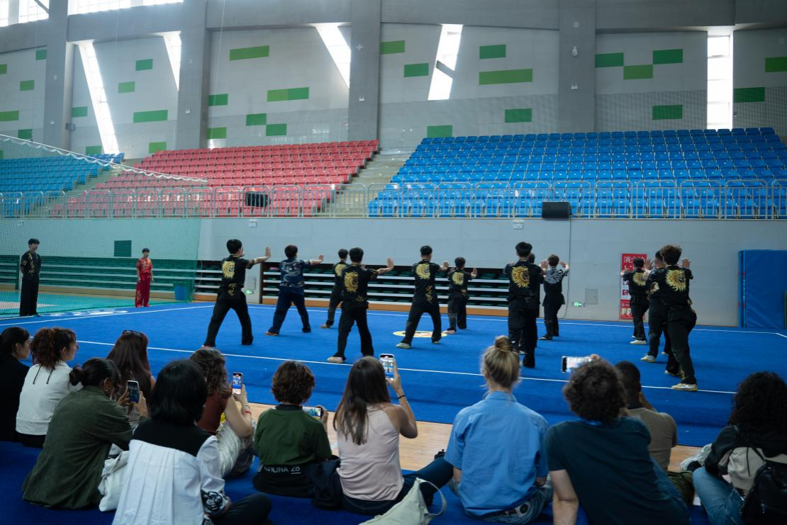 体育学院学生带来的中国传统武术教学实践展示,则以刚劲有力的姿态点燃现场热情。访问团师生在学习礼仪手势与经典招式的过程中,深入了解武术深厚的历史底蕴。活动中,体育学院武术教师王志飞与意大利舞蹈家携手呈现了“舞”与“武”的即兴创意融合表演,既展现了体育与艺术的不同魅力,更诠释了中外文化互鉴的美好图景,赢得全场热烈的掌声。
