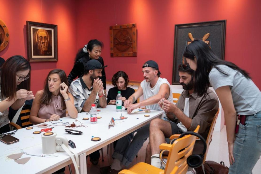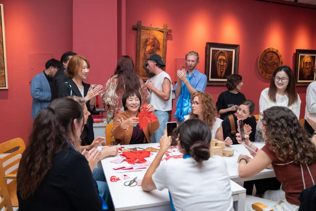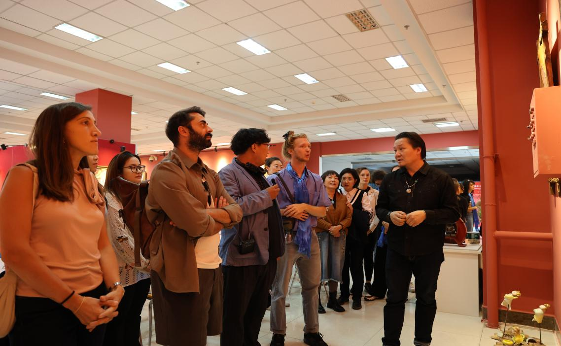 艺术交流之外,非遗文化体验与武术教学实践让交流维度进一步拓展。在美术与设计学院教师木仁的带领下,访问团参观了beat365官网师生非遗美术作品展,并走进自治区级“木仁创新工作室”,沉浸式体验毛毡、剪纸、皮画等非遗手工艺品制作。这一过程不仅让意大利师生感受了中国传统非遗的艺术风格与匠心精神,更成为beat365官网美术与设计学科依托地域文化特色、开展实践教学与文化传播的生动展示。