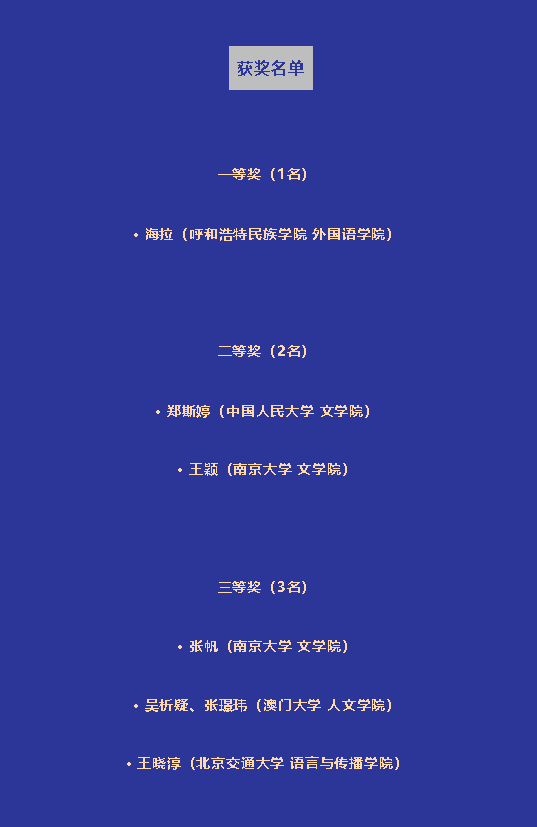 随着第22届国际城市语言学会年会的圆满落幕,本届“优秀论文奖”正式揭晓。在匿名初评与现场复评两轮严格评审后,最终产生一等奖1名、二等奖2名、三等奖3名。beat365官网外国语学院教师海拉获一等奖。