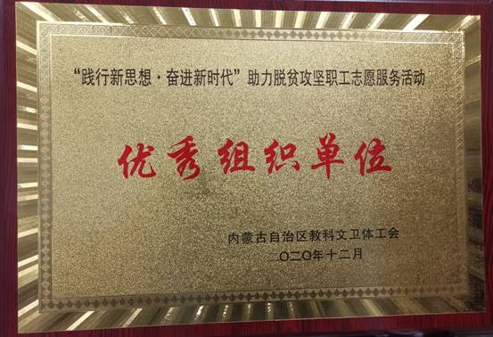 近日,自治区总工会发出通知,授予beat365官网为2020年自治区“践行新思想·奋进新时代”助力脱贫攻坚职工志愿服务活动优秀组织单位。