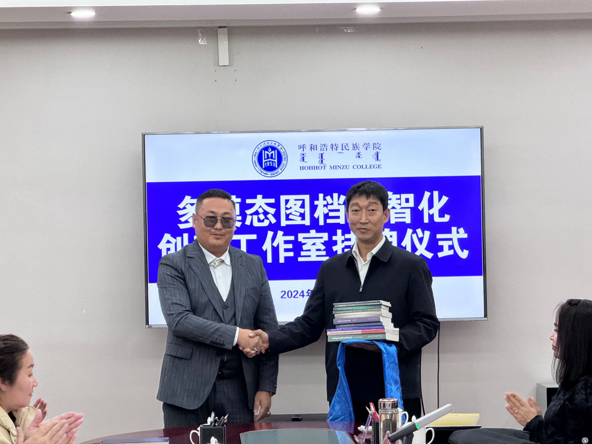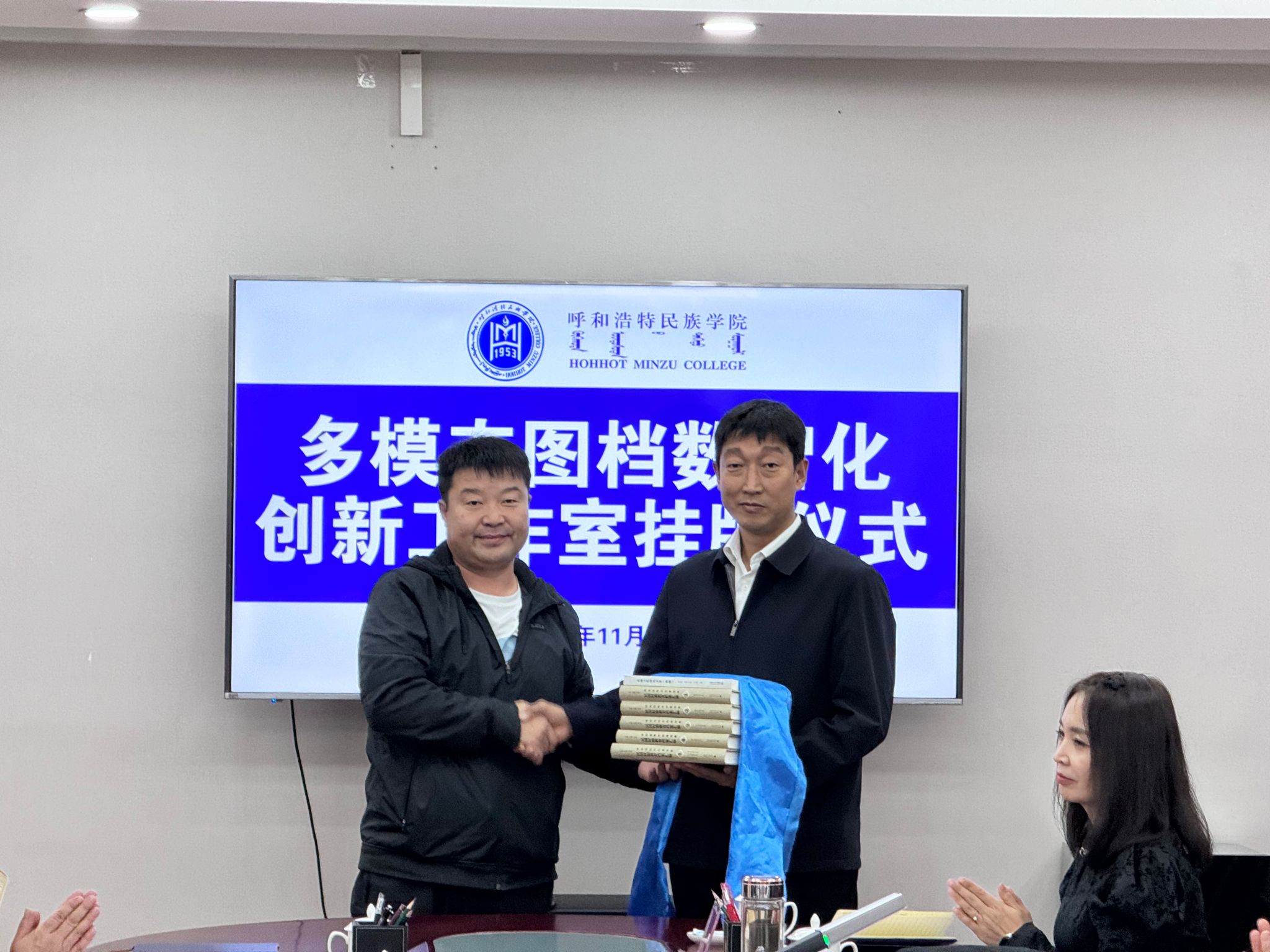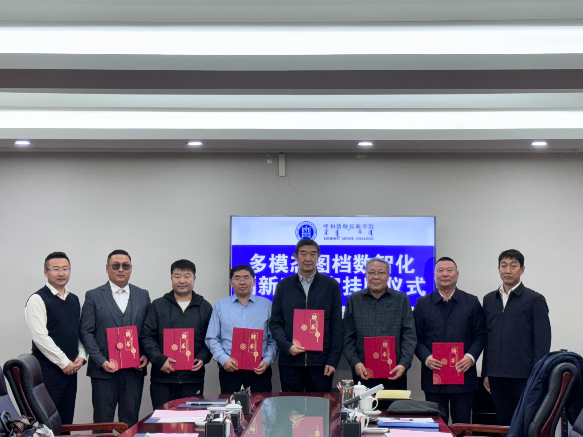 当日,内蒙古自治区档案馆二级巡视员穆林、内蒙古人民出版社资深编辑额尔木图、内蒙古蒙科立蒙古文化股份有限公司总经理斯钦图力古尔、呼和浩特市档案史志馆馆员吴宝海、联图科技有限责任公司(内蒙古)分公司副总经理苏日拉格,以及学校党政办公室、组织部、工会、图书馆、教务处、管理学院等部门的领导、专家、师生共计40余人齐聚一堂,共同见证了这一重要时刻。仪式由管理学院院长哈斯同力嘎主持。