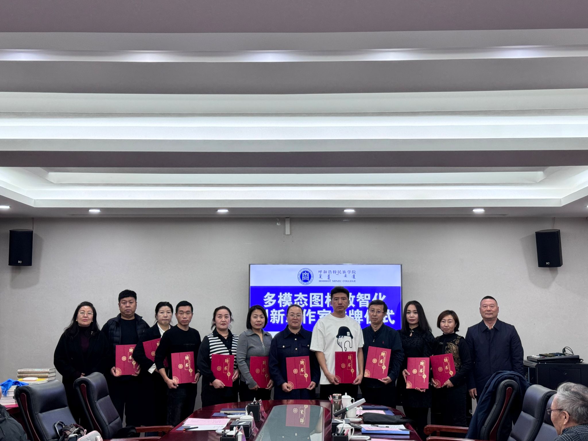 创新工作室负责人青格乐图老师向与会嘉宾介绍了创新工作室的成立背景、宏伟的发展目标及未来蓝图。随后,与会领导携手为创新工作室揭开神秘面纱,并举行了庄重的赠书仪式。