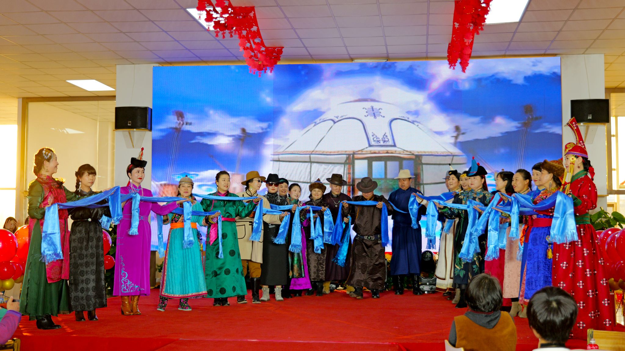 教职工表演了长调《敬请》、独唱《幸福中国一起走》、舞蹈《辅导员战线联盟》、民歌联唱小合唱《画你》《美丽的草原我的家》、舞蹈《万丽》、独舞《吉祥》、民族服装秀、红歌联唱等精彩节目。