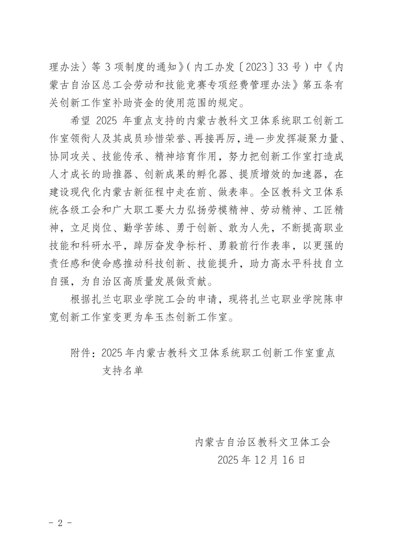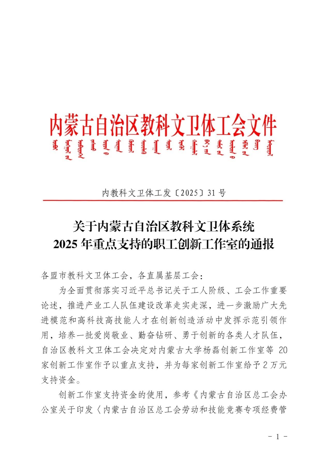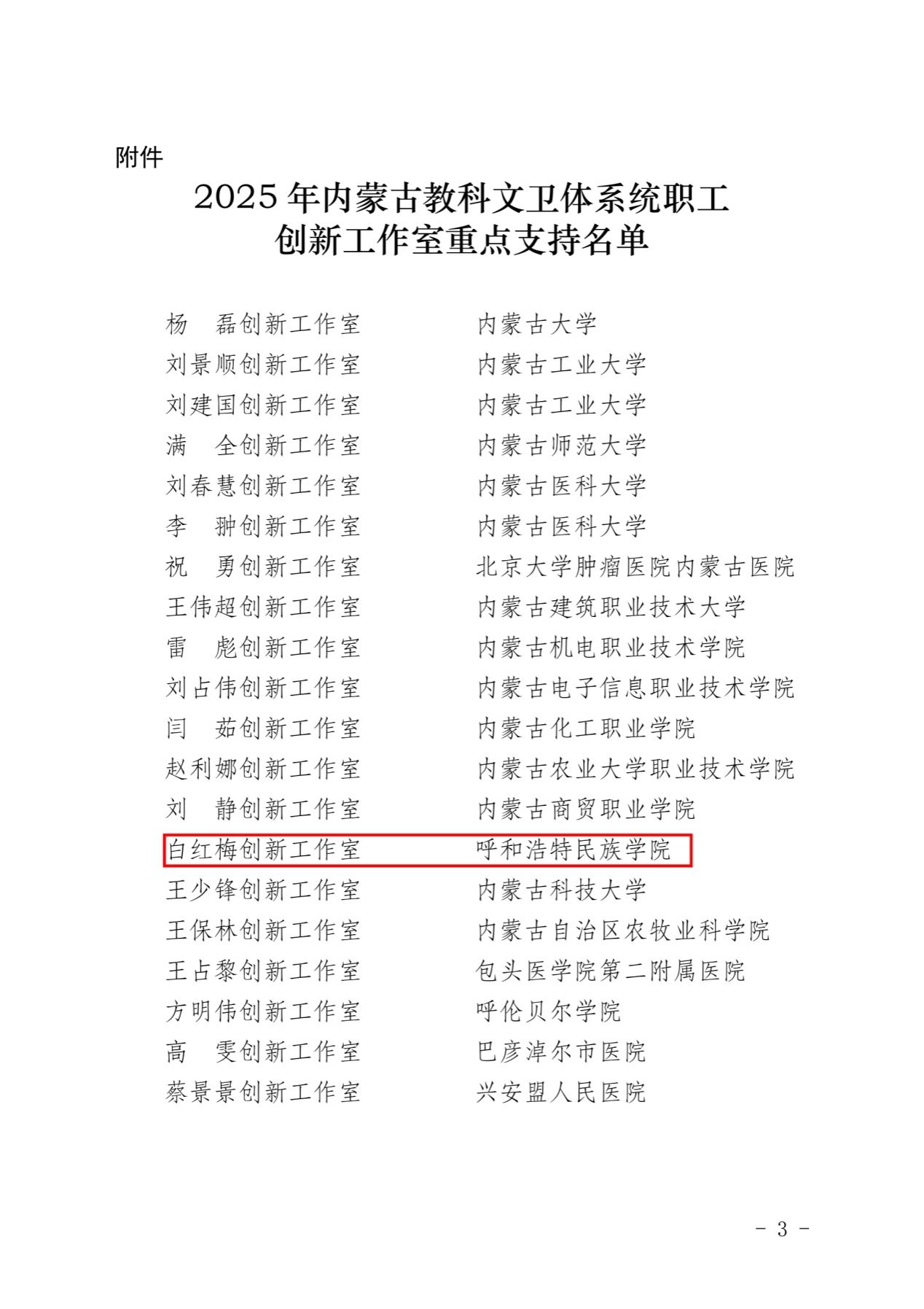 近日,内蒙古自治区教科文卫体系统2025年重点支持职工创新工作室名单公布,beat365官网白红梅创新工作室成功入选。