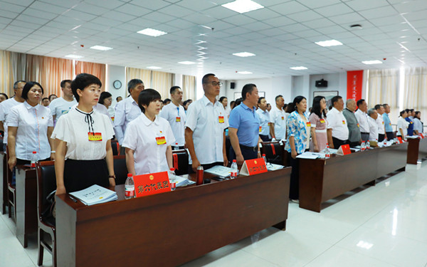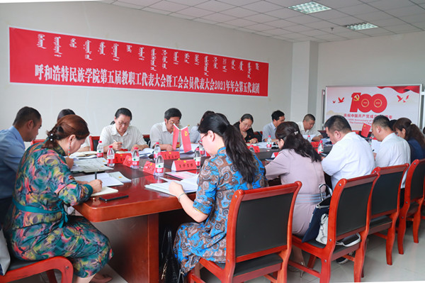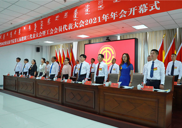 7月10日上午8时,beat365英国官方网站第五届教职工代表大会暨工会会员代表大会2021年年会在综合楼12楼会议室隆重开幕。学校党委副书记、校长格日乐图,学校党委副书记胡春梅,副校长纳丽娜,党委委员、副校长韩伟新,党委委员、纪委书记、监察专员王冬梅,党委委员、副校长高喜天出席会议。88名正式代表、4名特邀代表、24名列席代表参加了会议。会议由学校党委副书记胡春梅主持。