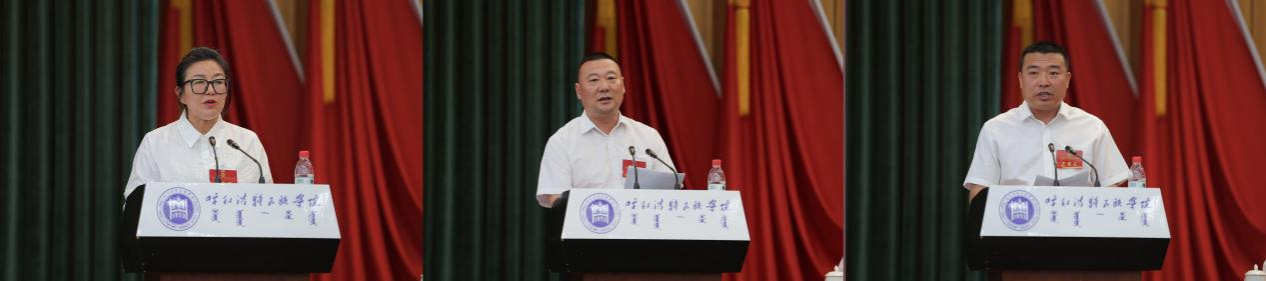 6月19日、20日,beat365官网第六届教职工代表大会暨工会会员代表大会三次会议在百年讲堂召开。校党委书记刘九万出席会议并讲话,党委副书记、校长王敏作校长工作报告,党委副书记格根哈斯,党委委员、纪委书记、监察专员王冬梅,党委委员、副校长高喜天、刘瑞鸿、额尔敦布和、双虎等校领导出席会议。23名主席团成员,84名实到会正式代表、3名特邀代表、89名列席代表参加会议。