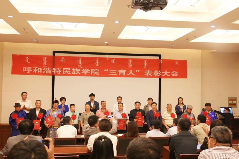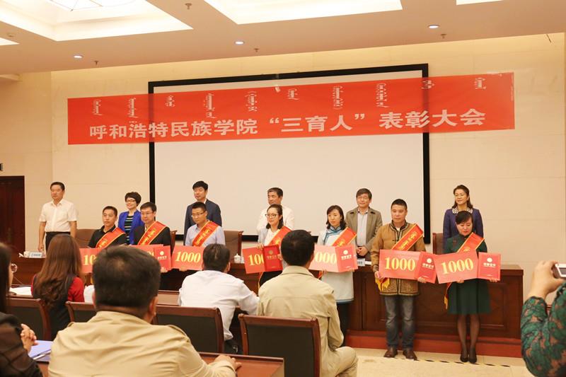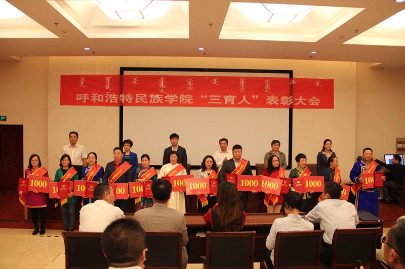 会上,胡春梅副书记、阿拉坦仓副院长分别宣读了“三育人”先进个人表彰决定和在校工作35年以上教职员工表彰决定。与会校领导为受表彰人员颁发了荣誉证书。