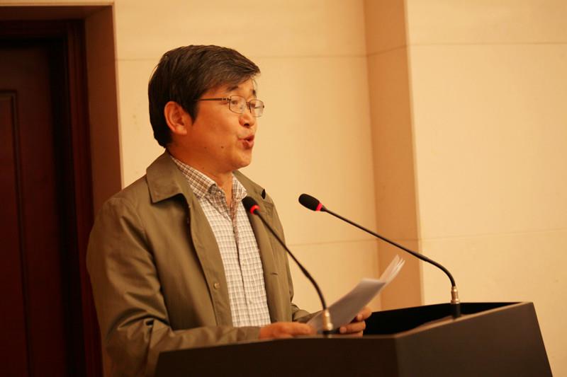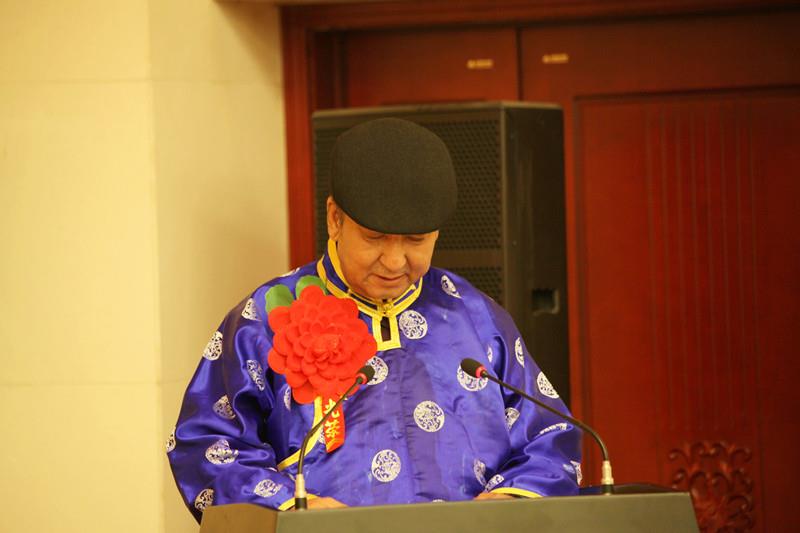 在学校工作达三十五年的教职员工代表蒙古语言文学系福柱发言