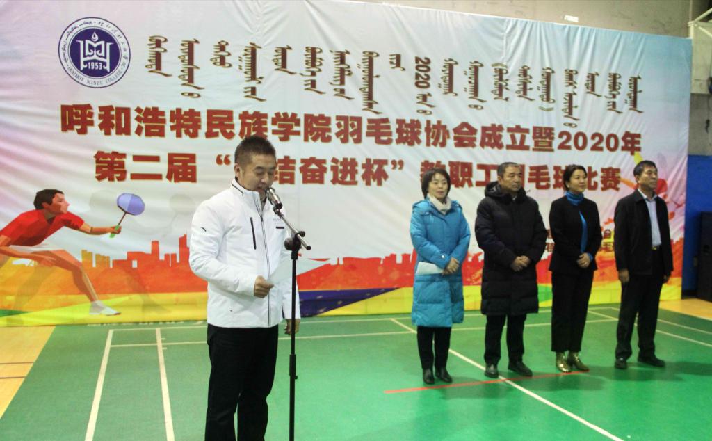 为铸牢中华民族共同体意识,进一步丰富教职工的文化生活,切实提高教职工的身体素质,推动“中华民族一家亲,同心共筑中国梦”的理念,由学校工会主办,羽毛球协会承办的beat365英国官方网站羽毛球协会成立暨2020年第二届“团结奋进杯”教职工羽毛球比赛开幕式11月25日下午在北校区体育馆一楼举行。学校党委副书记、校长格日乐图,党委副书记胡春梅,副校长纳丽娜出席开幕式。学校各职能部门和分工会主席、全体运动员、裁判员和部分学生代表150余人参加了开幕式。开幕式由学校党委委员、党政办主任朝格吉乐图主持。