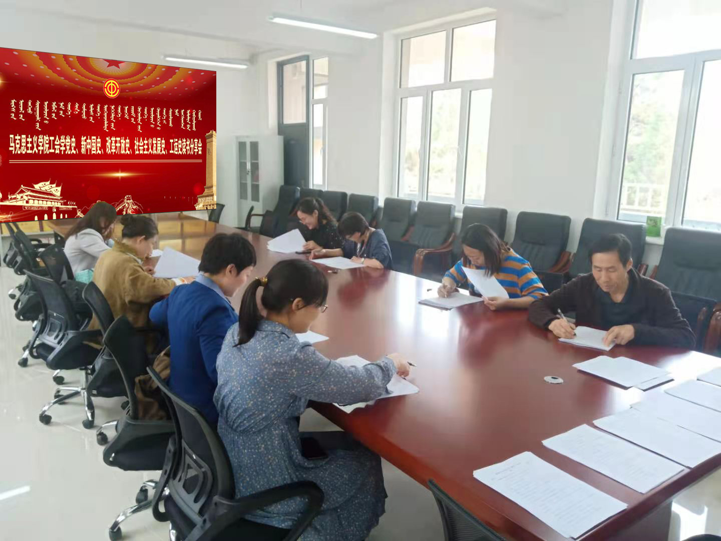 马列主义学院党总支书记额斯日格仓等三位老师老师以“改革开放——书写社会主义现代化建设的壮美篇章”、“社会主义改造理论”为主题分享学习心得。