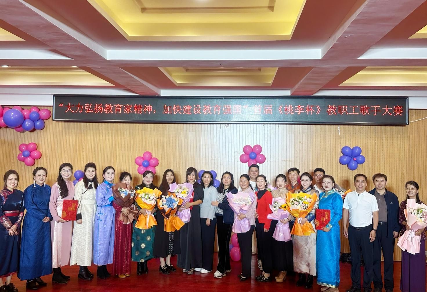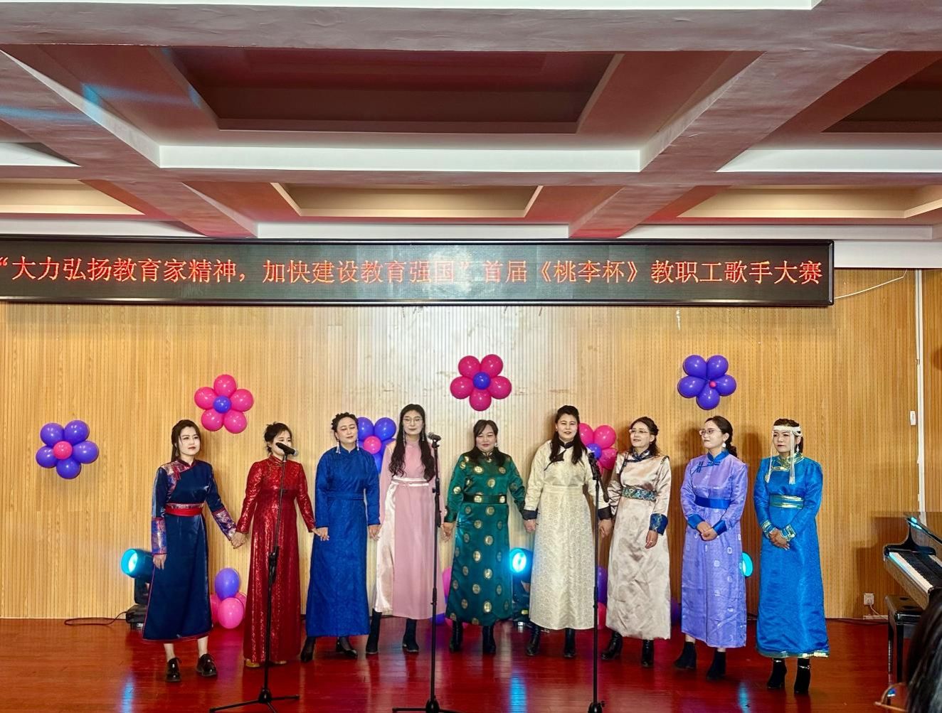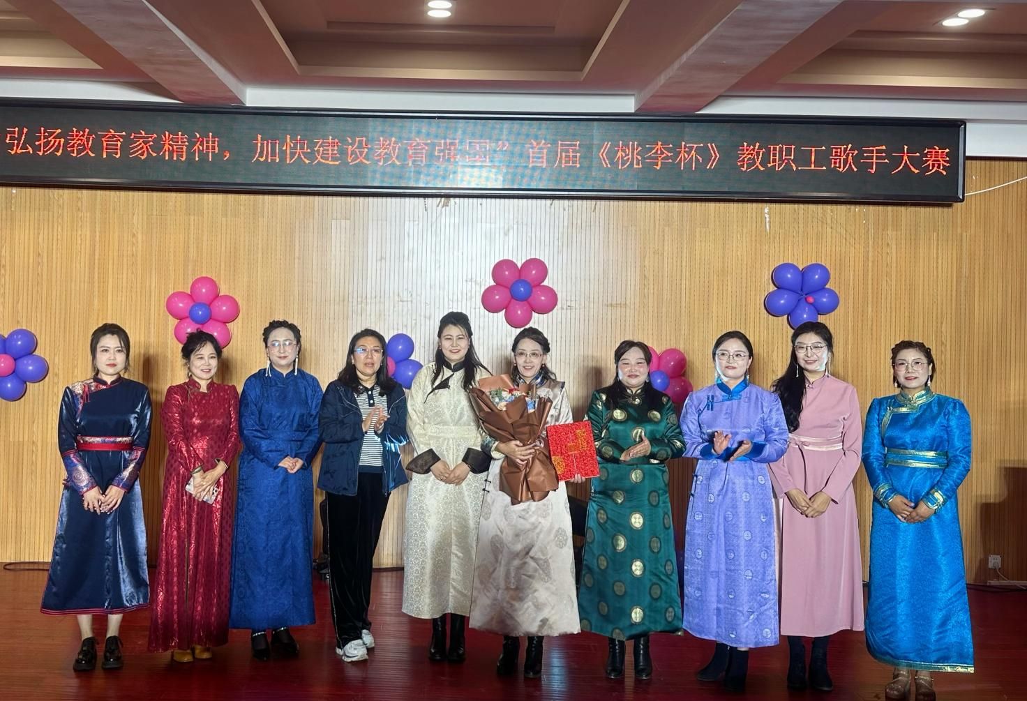 为庆祝第40个教师节,展现beat365官网教职工才艺风采,持续唱响时代主旋律,9月3日晚,由学校工会主办,音乐与舞蹈学院承办的“大力弘扬教育家风采,加快建设教育强国”首届《桃李杯》教职工歌手大赛在音乐楼多功能厅拉开帷幕。比赛邀请音乐与舞蹈学院包秀兰副教授、包金花副教授、青年讲师格日乐巴图担任评委。工会、各二级学院相关负责人、参赛教师、学生代表近100人观看了比赛。