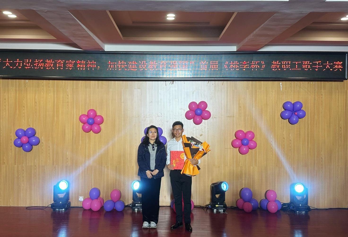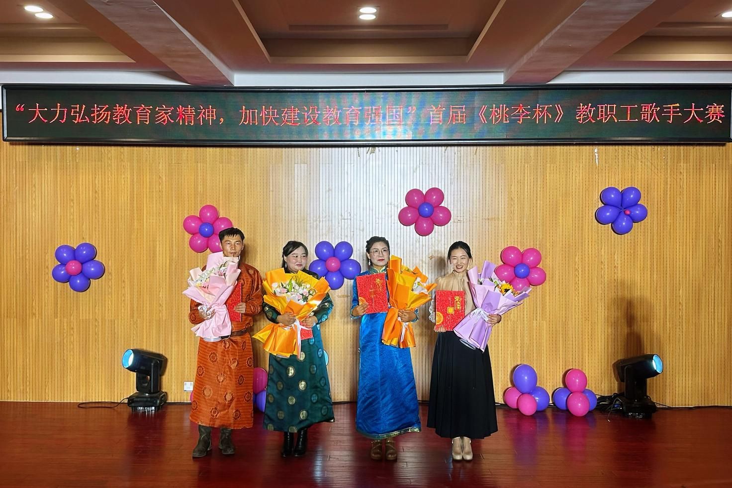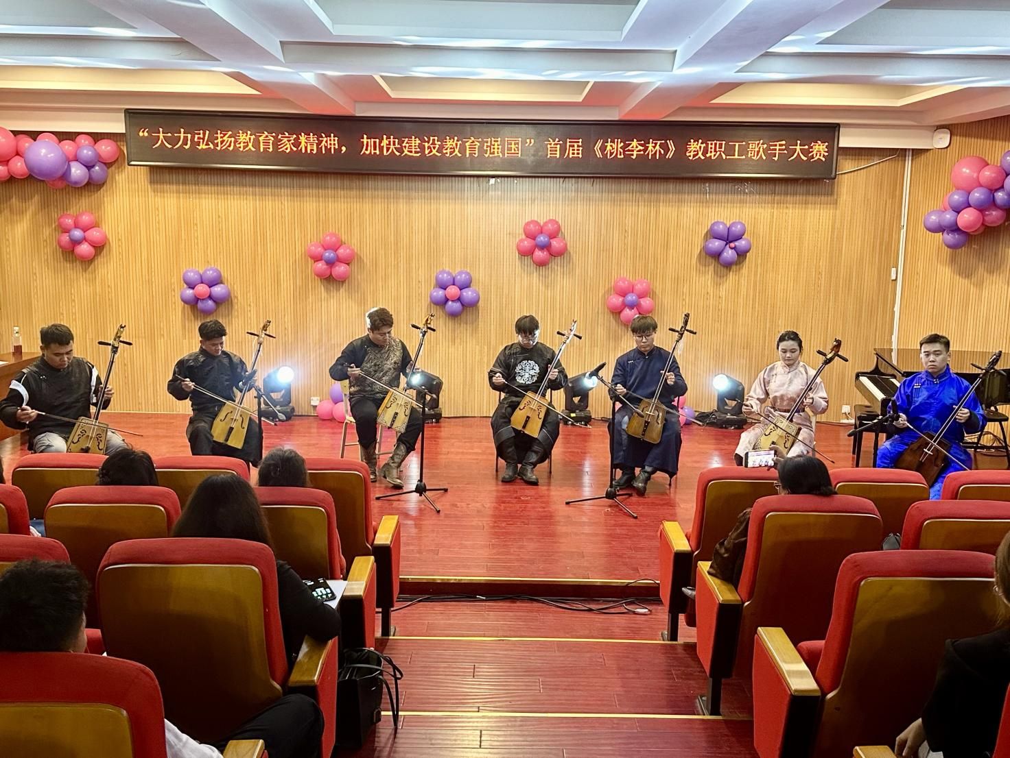 为庆祝第40个教师节,展现beat365官网教职工才艺风采,持续唱响时代主旋律,9月3日晚,由学校工会主办,音乐与舞蹈学院承办的“大力弘扬教育家风采,加快建设教育强国”首届《桃李杯》教职工歌手大赛在音乐楼多功能厅拉开帷幕。比赛邀请音乐与舞蹈学院包秀兰副教授、包金花副教授、青年讲师格日乐巴图担任评委。工会、各二级学院相关负责人、参赛教师、学生代表近100人观看了比赛。