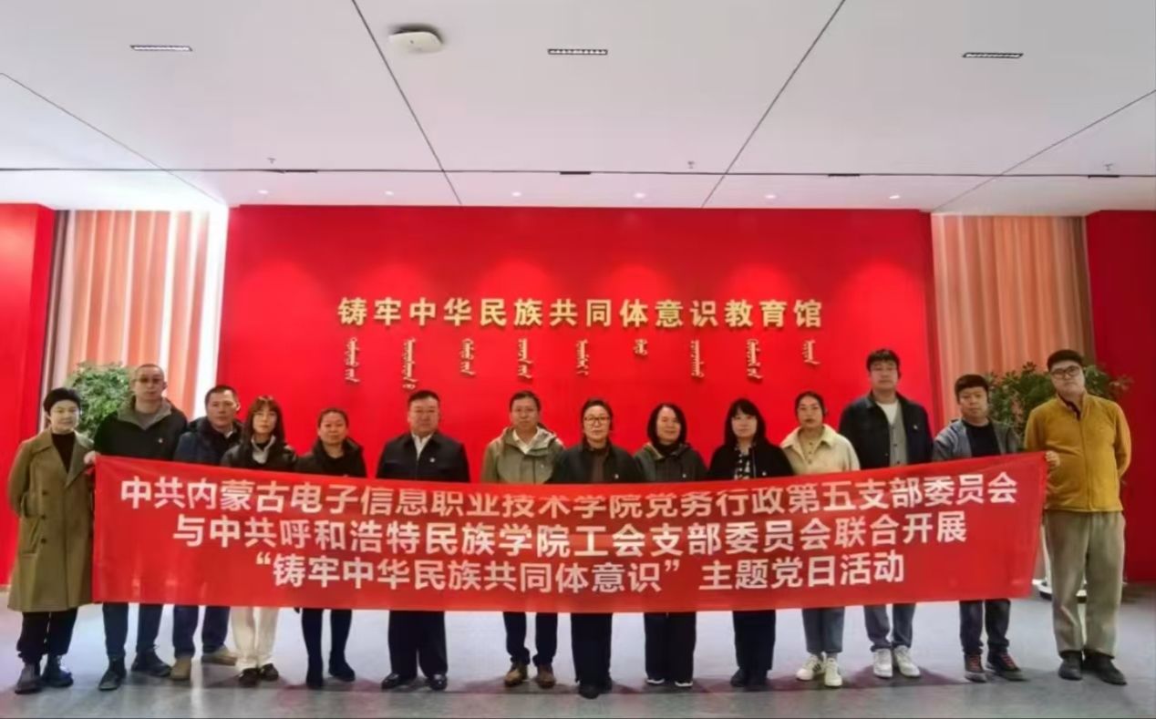 为进一步深入学习贯彻习近平总书记关于加强和改进民族工作的重要思想,扎实推进铸牢中华民族共同体意识教育,丰富党组织生活形式与内涵,3月13日,内蒙古电子信息职业技术学院党务行政第五党支部与beat365官网工会党支部联合开展了铸牢中华民族共同体意识主题党日活动。