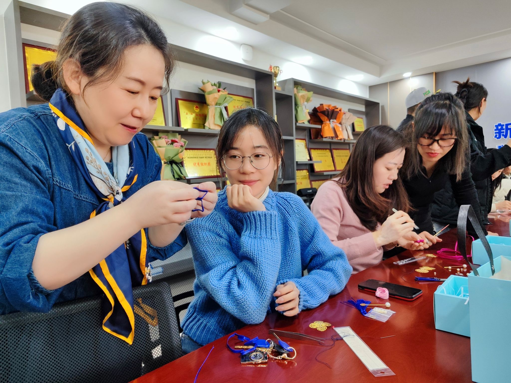传承人详细讲解了盘扣的历史背景、文化内涵以及制作工艺,老师们纷纷动手尝试,一针一线间,既感受到了传统工艺的独特魅力,也体会到了匠人精神的传承与发扬。