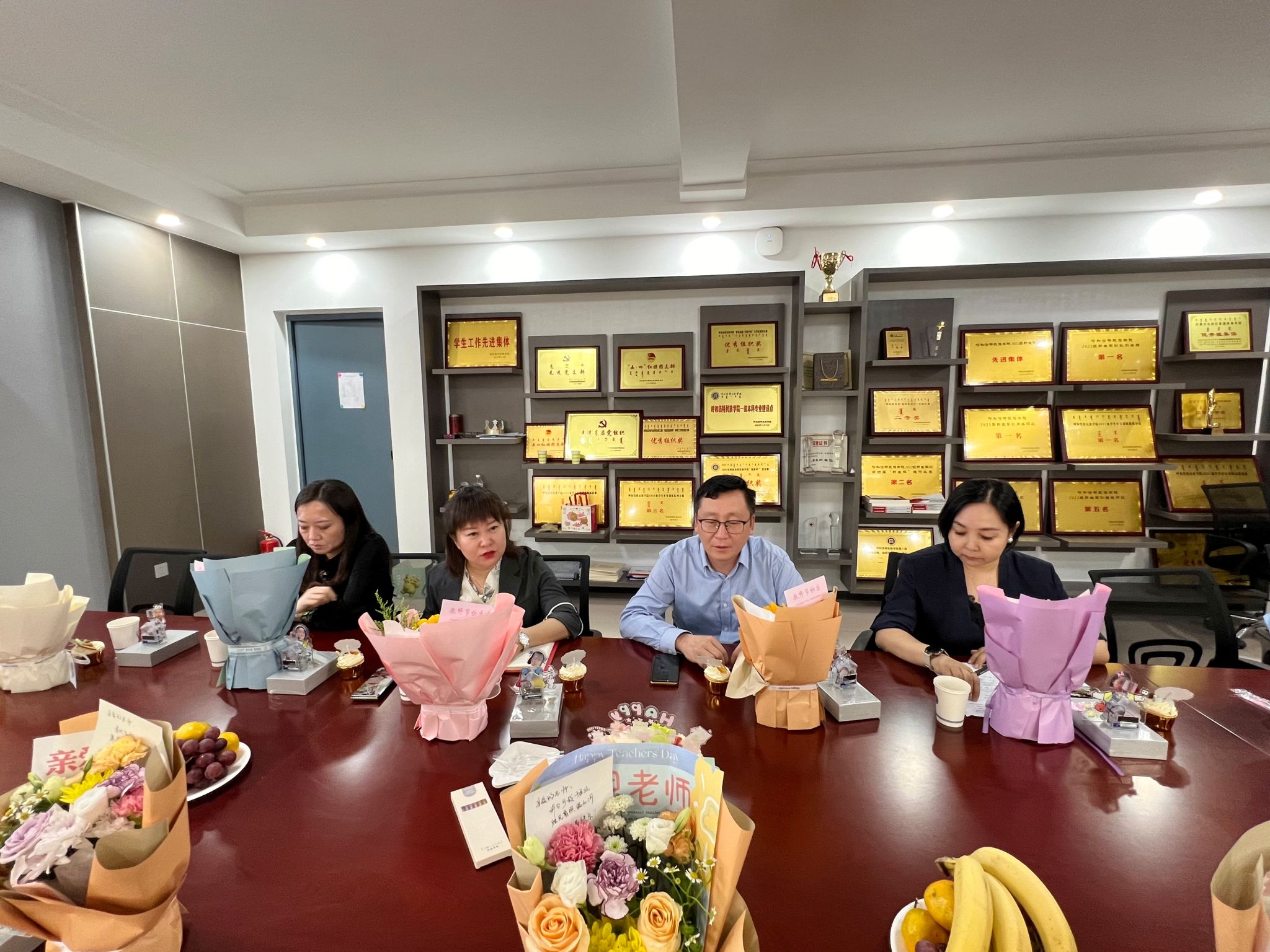 院长额尔敦毕力格在表达节日祝福的同时,回顾了学院的发展历程,充分肯定了老师们在学院整体发展中发挥的作用,并呼吁大家以更加饱满的热情和更加严谨的态度,投身到教育教学工作中,为培养更多优秀的新闻传媒人才而努力奋斗。