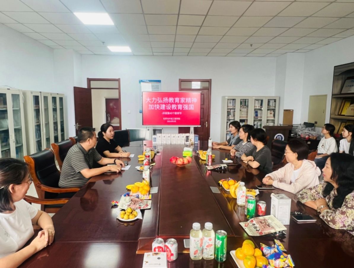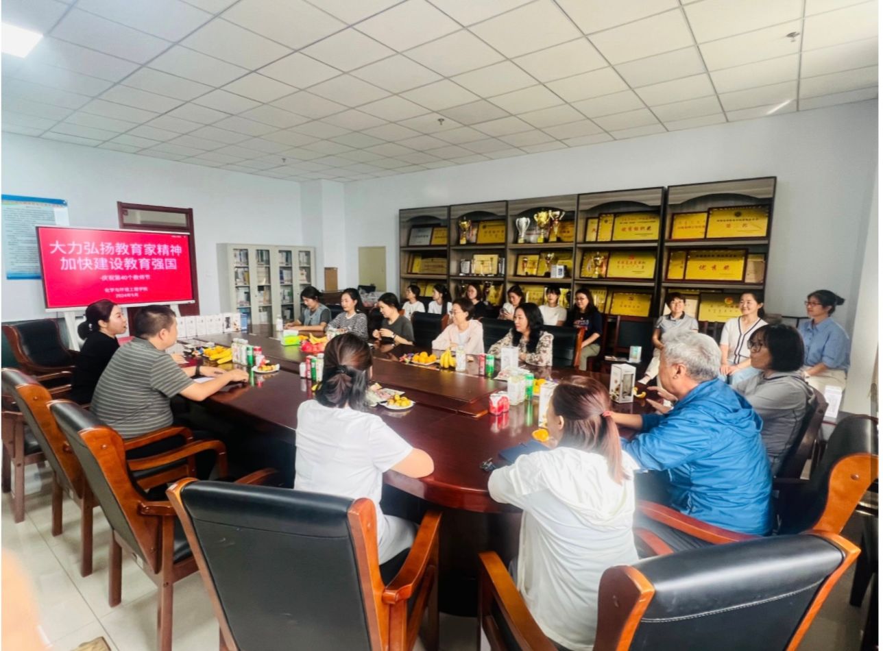 为热烈庆祝第40个教师节,大力弘扬教育家精神,营造尊师重教浓厚氛围,激励教育工作者不忘初心、牢记使命,以更加奋发有为的精神状态推动教育事业高质量发展。化学与环境工程学院于9月5日在综合楼1108会议室举行教师节座谈会,围绕“大力弘扬教育家精神,加快建设教育强国”主题,共谈心得感悟、共享育人经验、共话学院发展。
