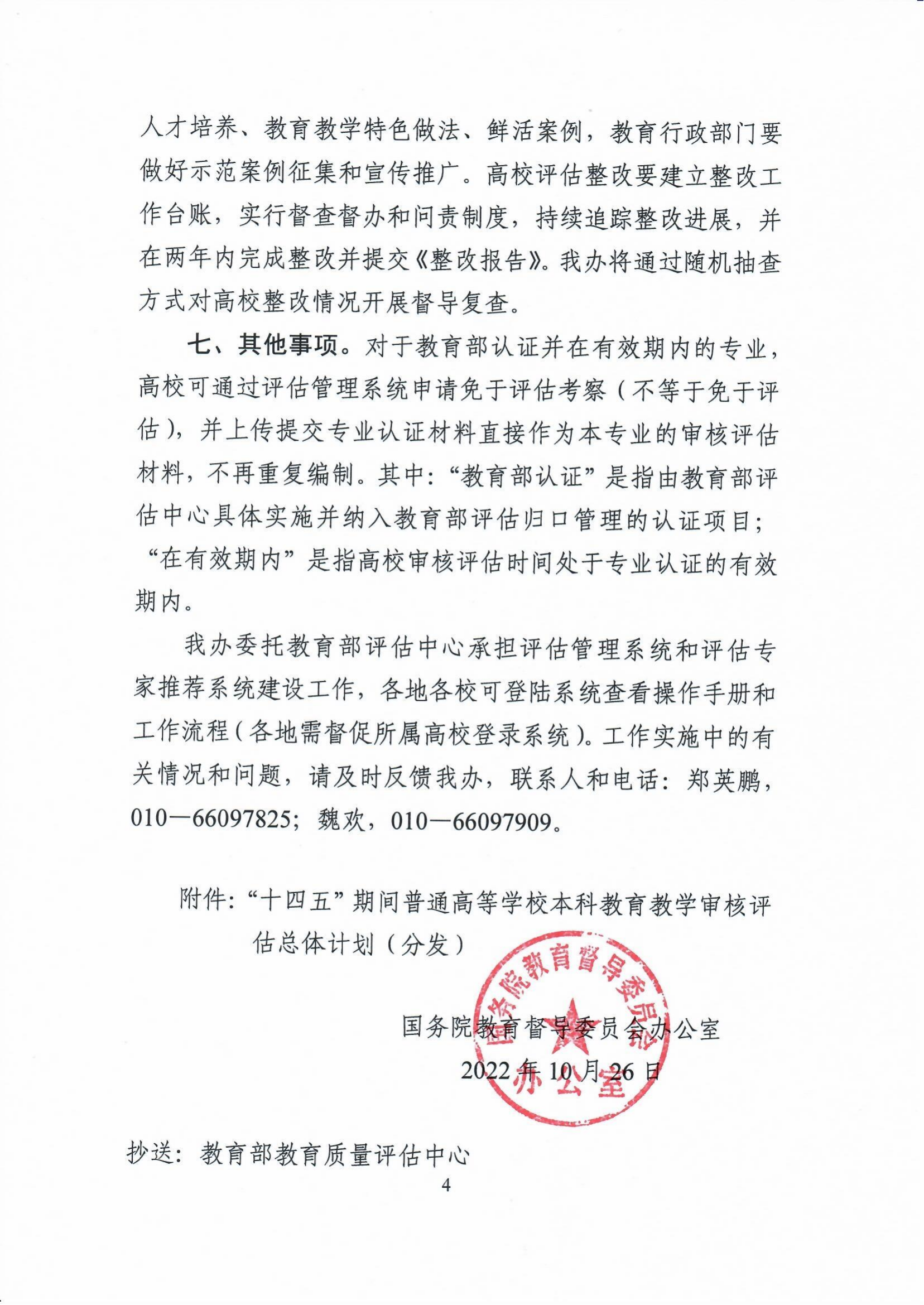 关于做好“十四五”期间普通高等学校本科教育教学审核评估工作的通知