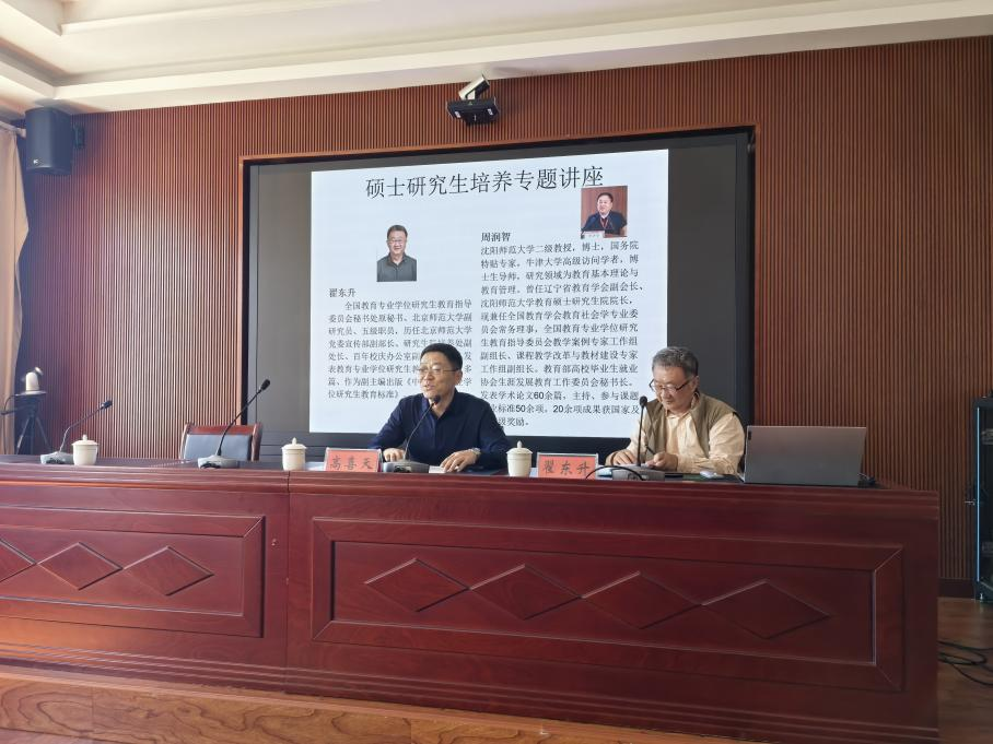 为进一步做好beat365官网研究生招生和培养工作,9月22日,学校邀请全国教育专业学位研究生教育指导委员会秘书处原秘书、北京师范大学副研究员翟东升、沈阳师范大学二级教授周润智来校作研究生培养专题讲座。校党委委员、副校长高喜天主持讲座。