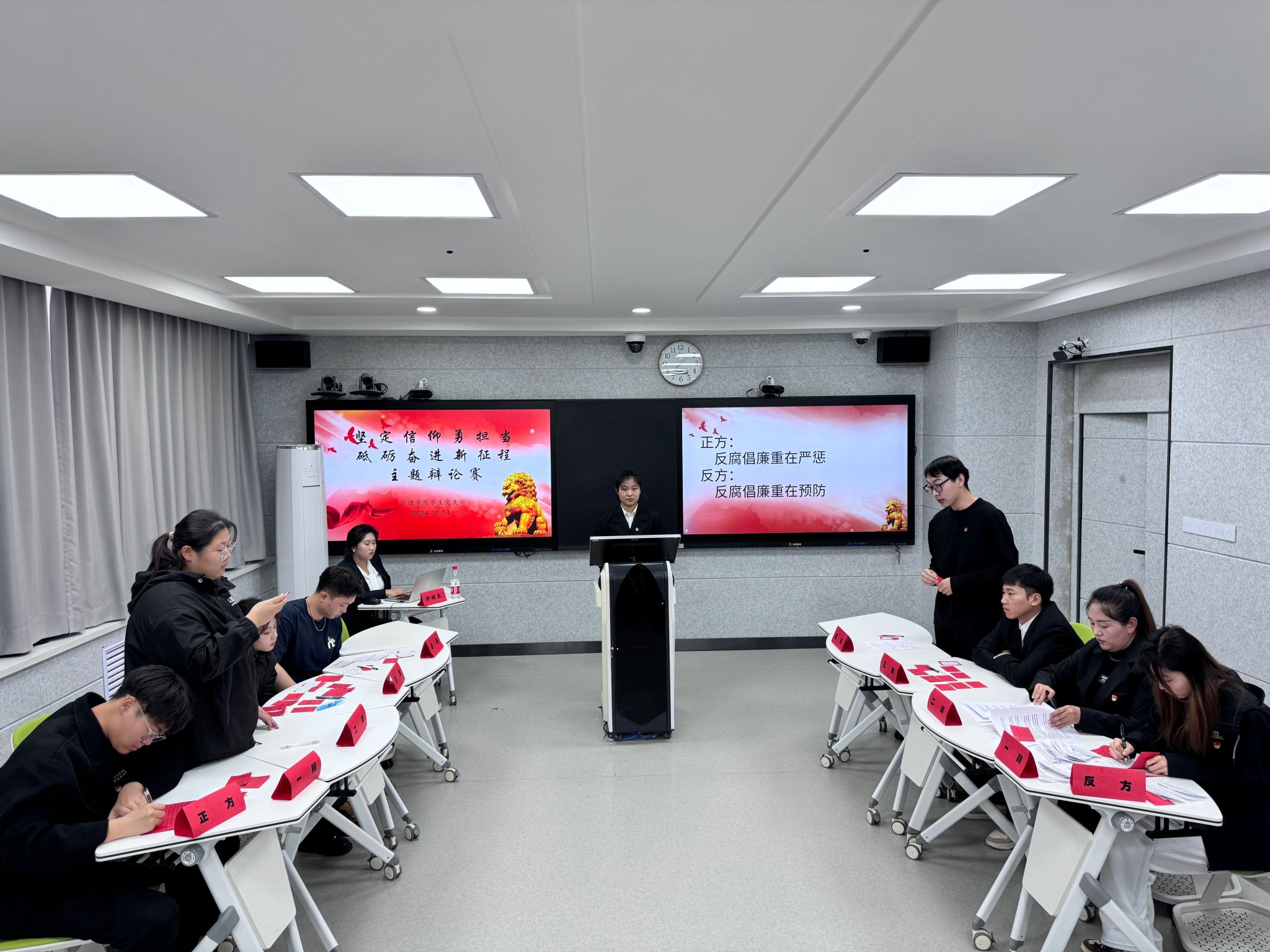 为深入学习贯彻习近平总书记关于加强党的纪律教育的重要论述,推动党纪学习教育入脑入心走深走实,推动廉洁文化建设实起来强起来,11月18日下午,管理学院学生党支部围绕“反腐倡廉重在严惩还是重在预防”辩题展开辩论。