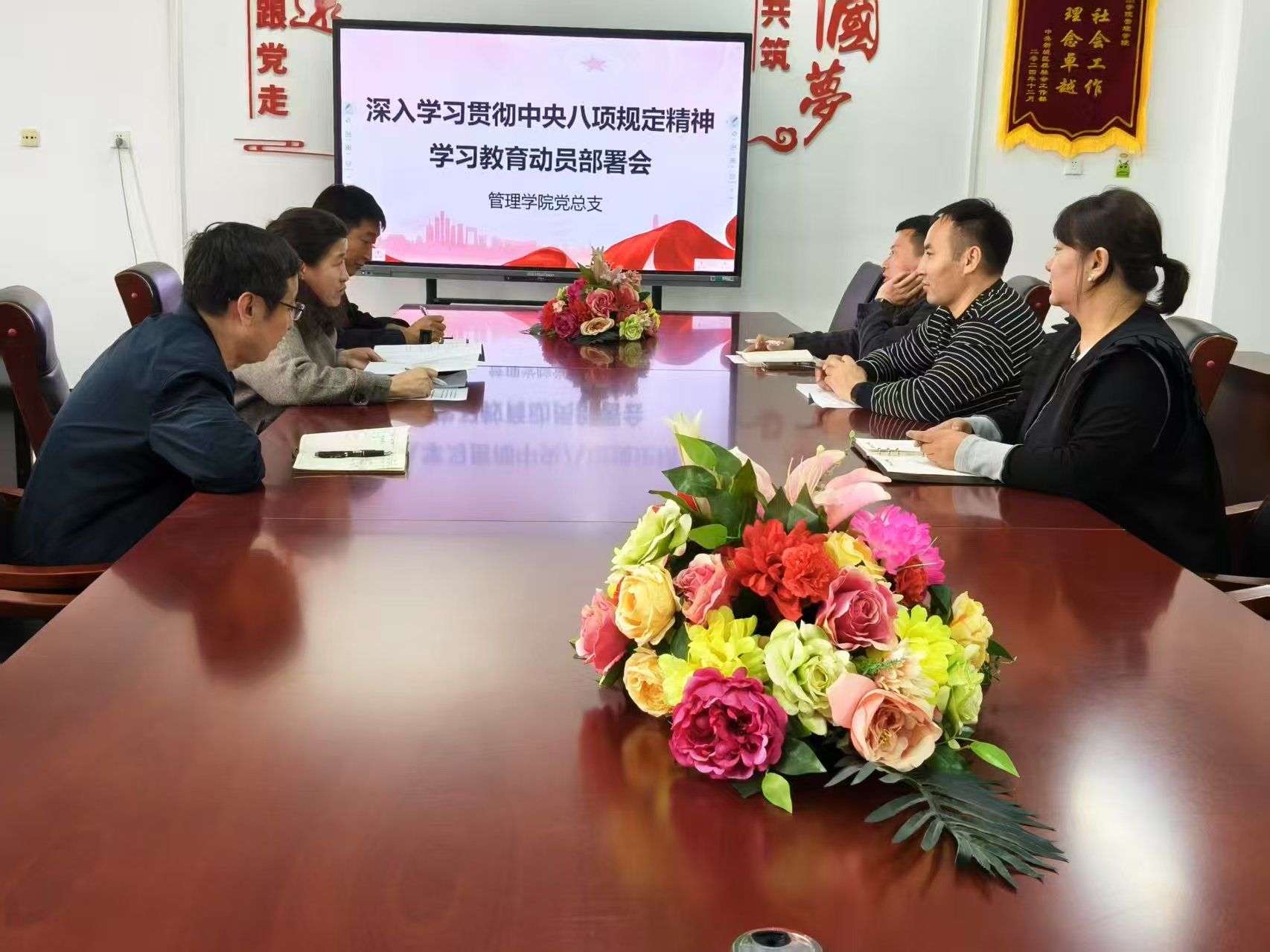 3月20日下午,管理学院党总支在学院会议室组织召开深入学习贯彻中央八项规定精神学习教育工作部署会议。学院党总支书记格日乐主持会议,学院领导班子成员、各党支部书记参会。