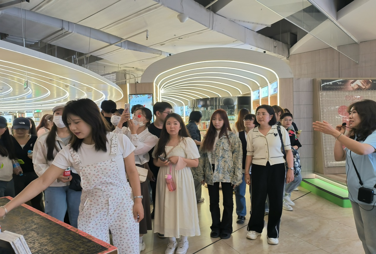 在新华书店图书大厦参观考察中,新华书店创立的“汉字艺术”研学基地最为吸引同学们,同学们通过各种数字化交互体验和活动,感受汉字魅力的同时,也学习了新华书店在数字化时代如何进行经营模式的创新和研学基地的策划运营。