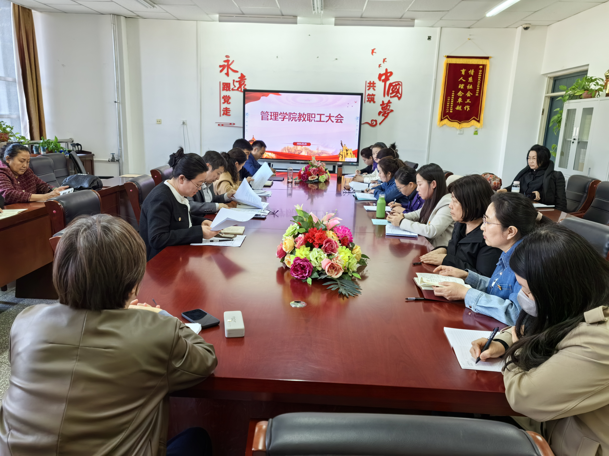 为全面落实“本科教育教学质量提升年”活动,持续推动管理学院本科教育教学改革,全面提升本科教育教学质量,同时为确保新学期教学工作平稳有序开展,3月20日,管理学院召开全体教职工大会。