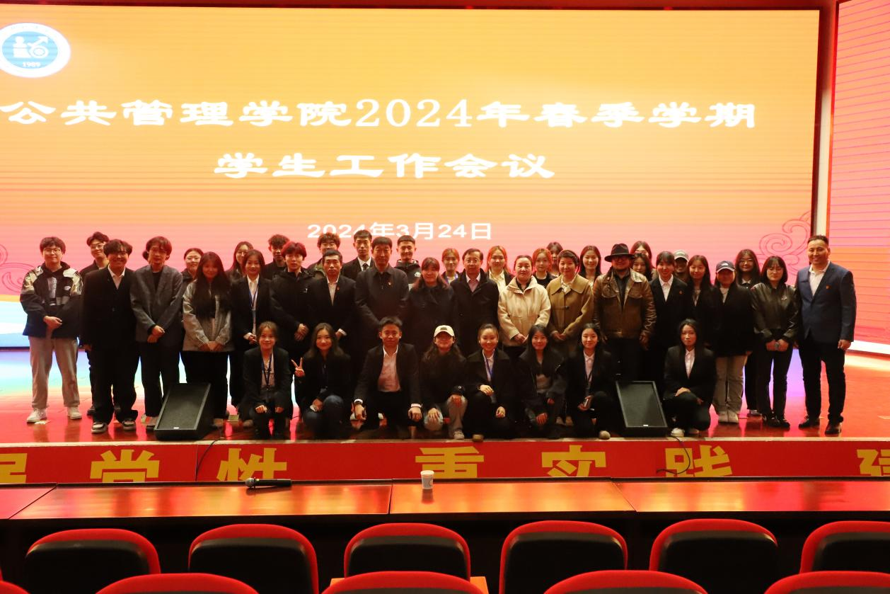 为了推动新学期各项工作的顺利进行,并帮助学生们在新的学期里明确人生方向、端正学习态度、遵守校规校纪、培养良好的行为习惯,学院于3月24日在北图书馆二楼召开了2024年春季学期学生工作会议,会议由团总支书记宝连老师主持,党总支书记格日乐、院长哈斯同力嘎、党总支副书记青格乐图,学工办主任前达蒙、各班班主任辅导员以及全院700多名学生参加。
