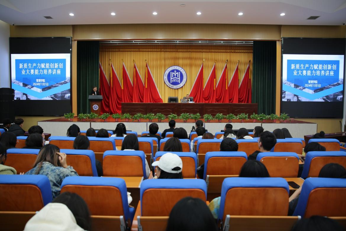 为了积极响应国家创新驱动发展战略,着力提升学生的创新创业能力,管理学院于2024年11月1日特别邀请了内蒙古财经大学创业学院院长、硕士生导师、全国财经院校创新创业联盟副秘书长徐军教授,在学术报告厅举行了一场专题讲座,主题为《新质生产力赋能创新创业大赛能力培养》。此次讲座由管理学院院长哈斯同力嘎老师主持,共有300余名师生参加。