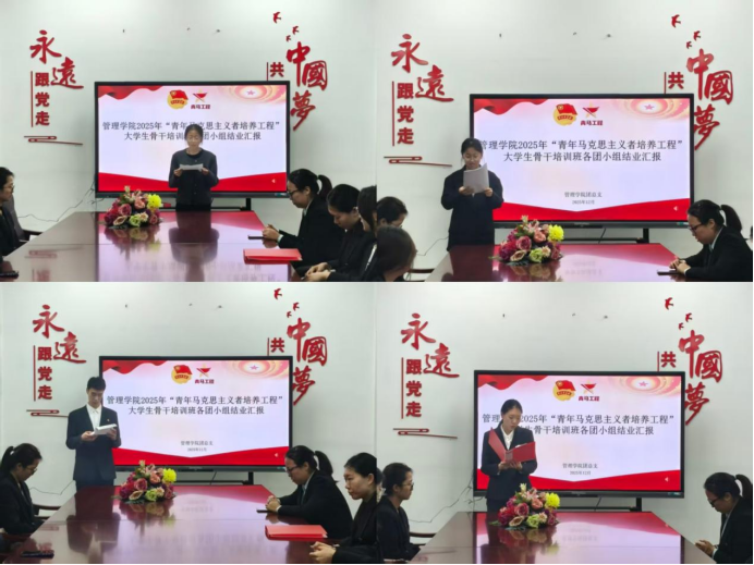 系列活动圆满收官之际,管理学院“青年马克思主义者培养工程” 大学生骨干培训班结业汇报顺利举行。各团小组精心筹备、多元呈现,系统复盘培训阶段的理论研习、实践历练与小组研讨成果,交流成长体会、凝聚思想共识,切实将培训所学内化于心、外化于行。最终,本次培训在各小组精心准备的节目表演中落下帷幕。
