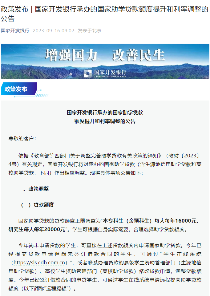 转发《国家开发银行承办的国家助学贷款额度提升和利率调整的公告》