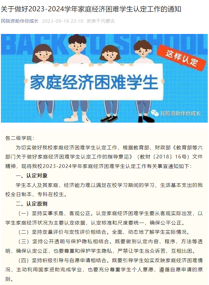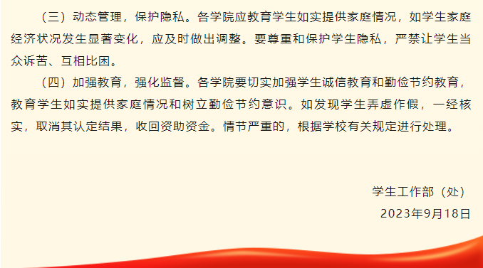 转载学校党委学生工作部(处)《关于做好2023-2024学年家庭经济困难学生认定工作的通知》