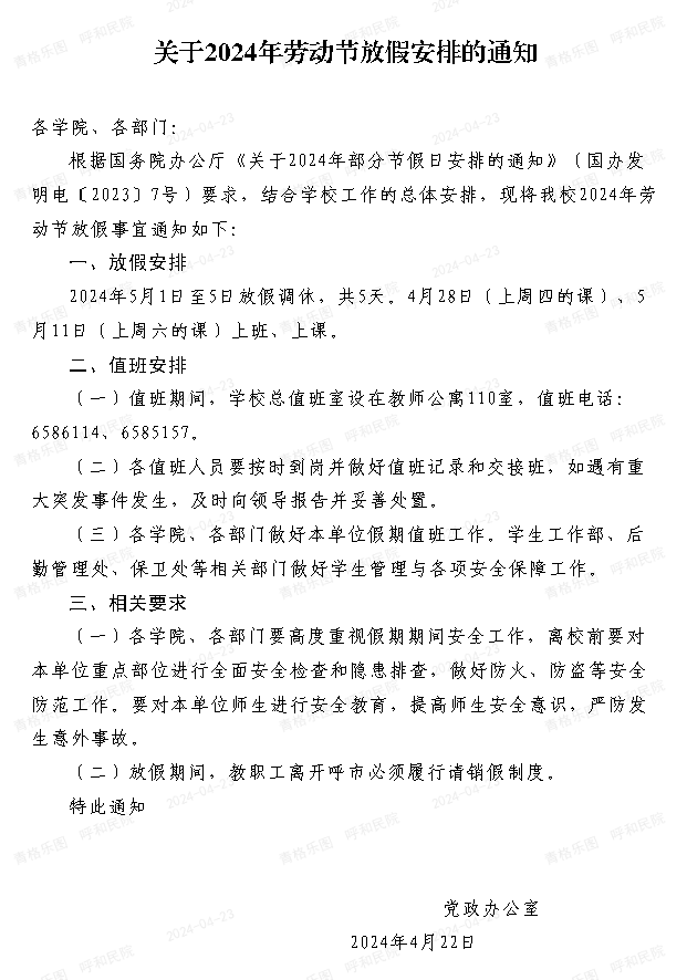 五一休假通知