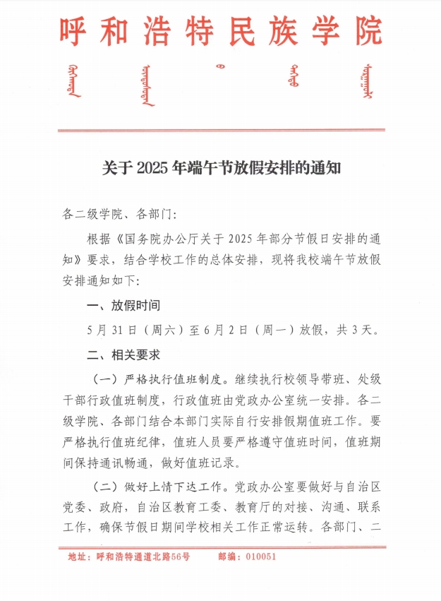 关于2025年端午节放假安排的通知