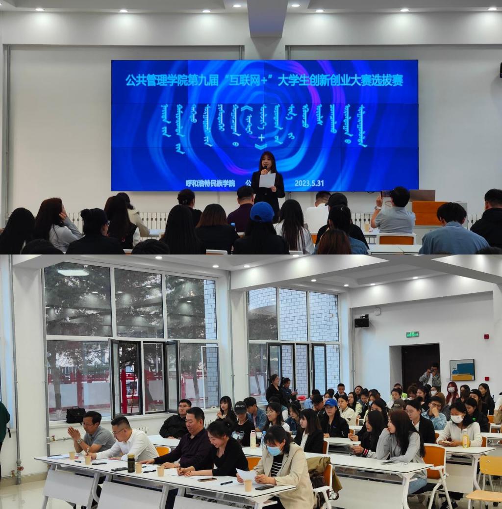 为深化创新创业教育改革,加强大学生创新创业能力培养,全面提高人才培养质量,公共管理学院于2023年5月31日晚7点在创业楼101教室举办了第九届“互联网+”大学生创新创业大赛选拔赛。化学与环境学院副教授陈玉珍博士、计算机科学与信息工程学院副教授冯培禄、内蒙古蒙科立蒙古文化股份有限公司赤峰分公司总经理斯钦图力古尔等担任本次赛事评委。