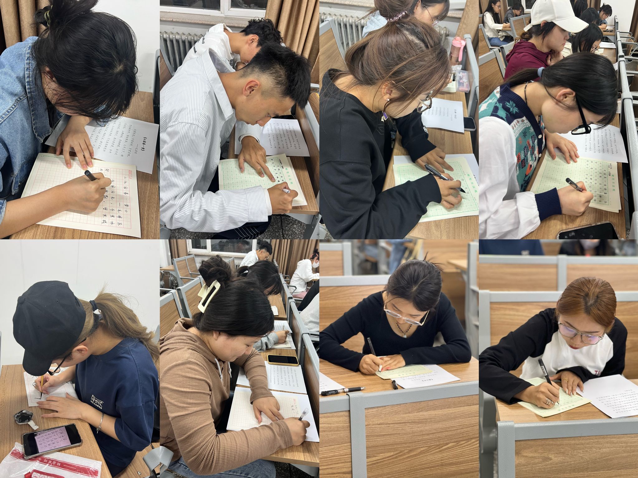 比赛中,同学们写姿端正,一丝不苟。小到一笔一画,大到每个字的间架结构,都是仔细斟酌,反复推敲,横竖撇捺、起笔收笔,同学们将平时所学本事都展现得淋漓尽致,整个比赛现场都充满着浓郁的墨香味儿。