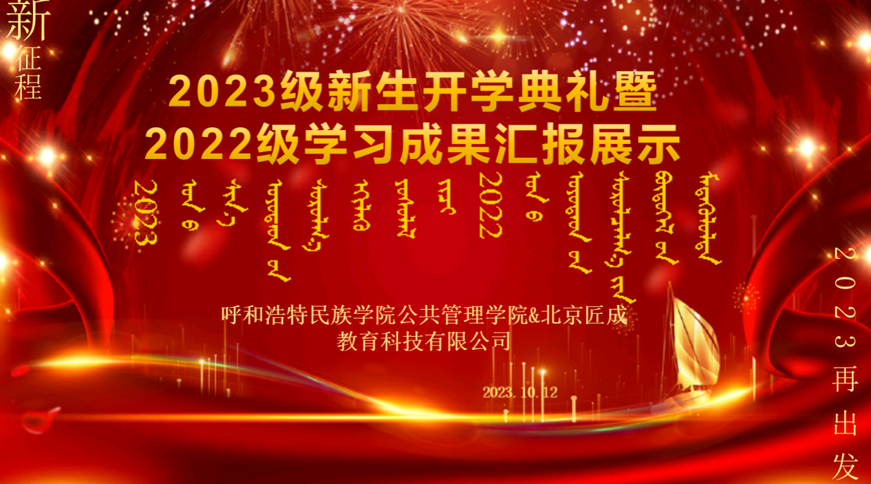 公共管理学院党总支书记格日乐、公共管理学院副院长额尔敦格日乐、公共管理学院文化产业管理教研室主任马冬梅以及北京匠成教育科技有限公司北方区总经理赵静、北方区总经理助理徐伟、北方区班主任刘媛,文化产业管理(数字化运营)四个班同学参加了开学典礼。