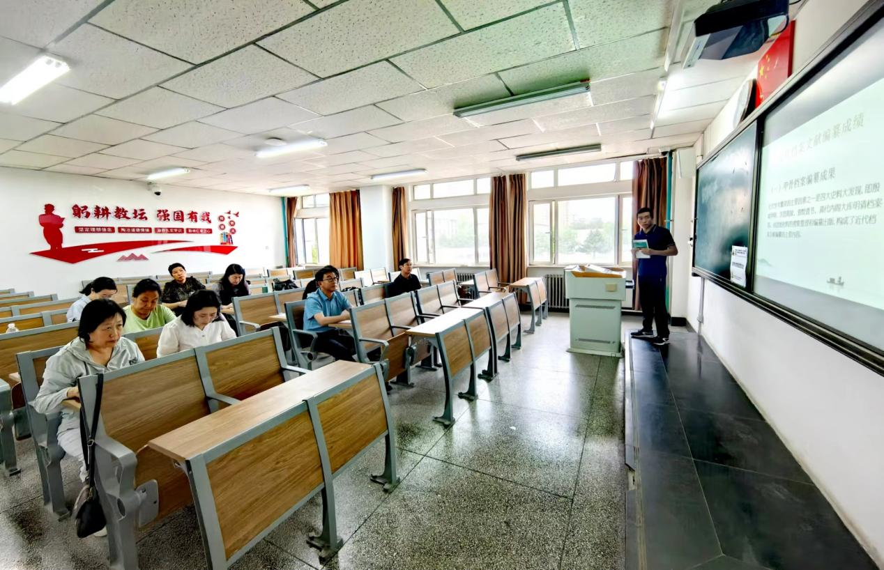 此次面试分为试讲和答辩两个环节。宝连老师针对档案文献编纂学中的第二章《近代档案文献编纂思想》第一节《近代档案文献编纂成绩》进行了试讲,将内容主要分为甲骨档案编纂成果、金石档案编纂成果、简牍档案编纂成果、纸质档案编纂成果共四个板块,过程中充分展现了宝连老师精妙的教学设计、流利的口语以及娴熟的课堂驾驭能力。随后,青格乐图、哈斯、德力格尔玛和克霞分别围绕宝连老师的试讲内容进行了提问,宝连对答如流,表达清晰。公共管理学院最终认定宝连老师高校教师资格教育教学能力测试(面试)成绩合格。