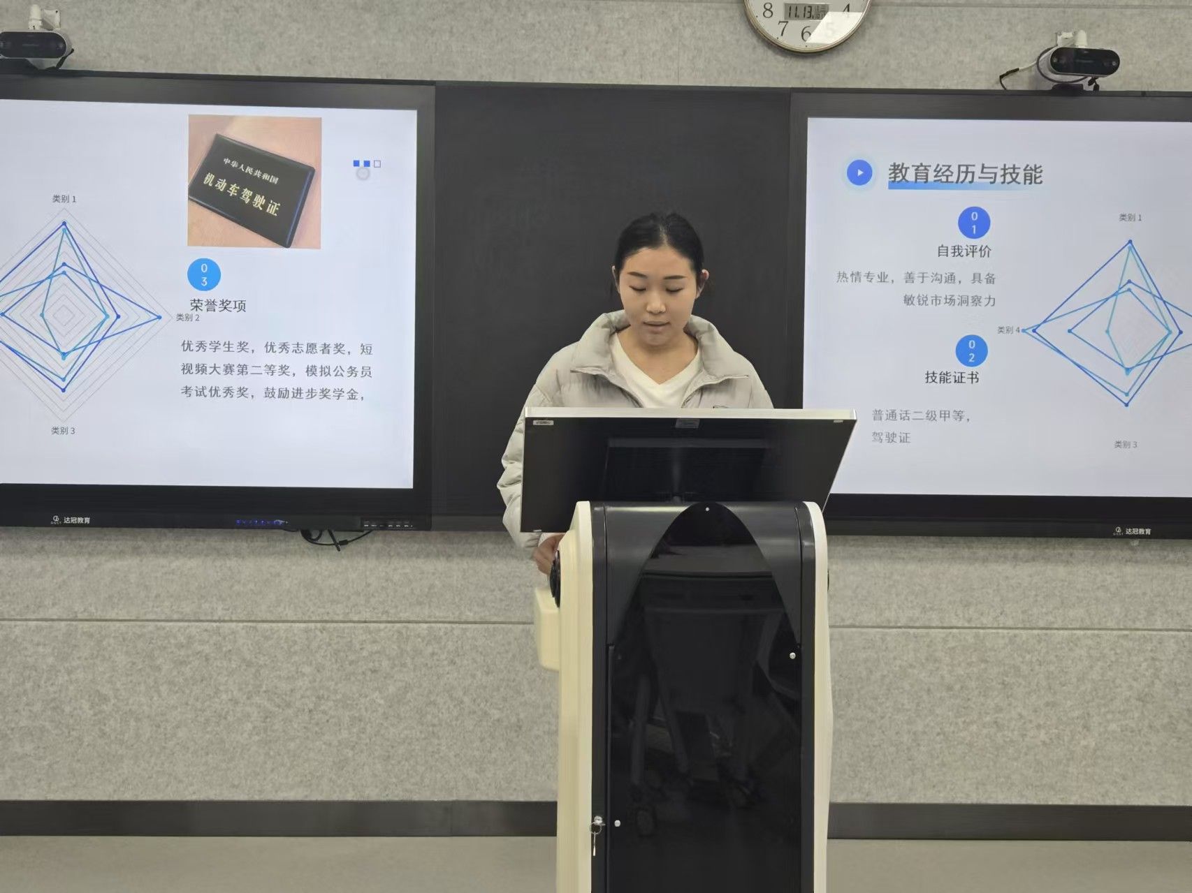 经由初赛环节对简历的严格筛选,最终有7位选手成功晋级决赛。决赛环节划评委们针对选手个人展示和简历设计进行提问,并根据其现场表现,从仪容仪表、简历制作和表达能力等方面打分,最终评选出本次大赛的获奖者。