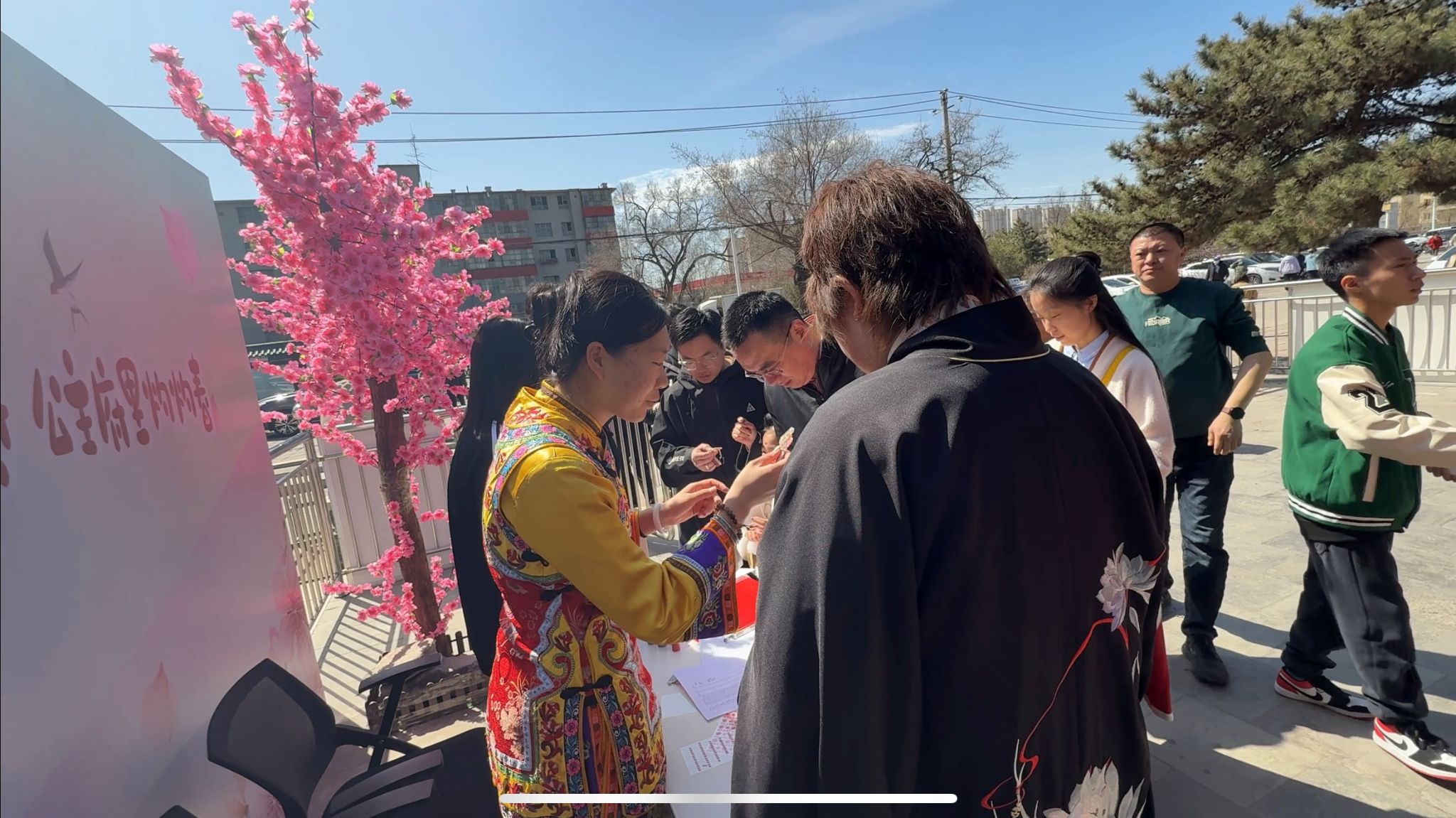 活动期间一部分同学担任讲解员,为游客讲述公主府的历史故事、建筑特色以及背后的文化内涵。从和硕恪靖公主的生平,到府内建筑所蕴含的清代风格与礼仪制度,讲解员们绘声绘色的讲解,让游客们仿佛穿越时空,回到了那个繁华的年代。一部分同学则投身于环境维护工作。他们手持清洁工具,认真清理着府内的每一个角落,不放过一片落叶、一丝灰尘。在擦拭古建筑的栏杆时,同学们小心翼翼,仿佛在与历史对话,生怕惊扰了这份古老的宁静。还有同学负责引导游客文明参观,提醒大家爱护文物,遵守参观秩序。还有的同学提供咨询服务,还有些同学穿上传统服装为游客拍照打卡提供服务。在大家的共同努力下,公主府的环境更加整洁优美,游客们也能更加有序地欣赏这座历史文化瑰宝。