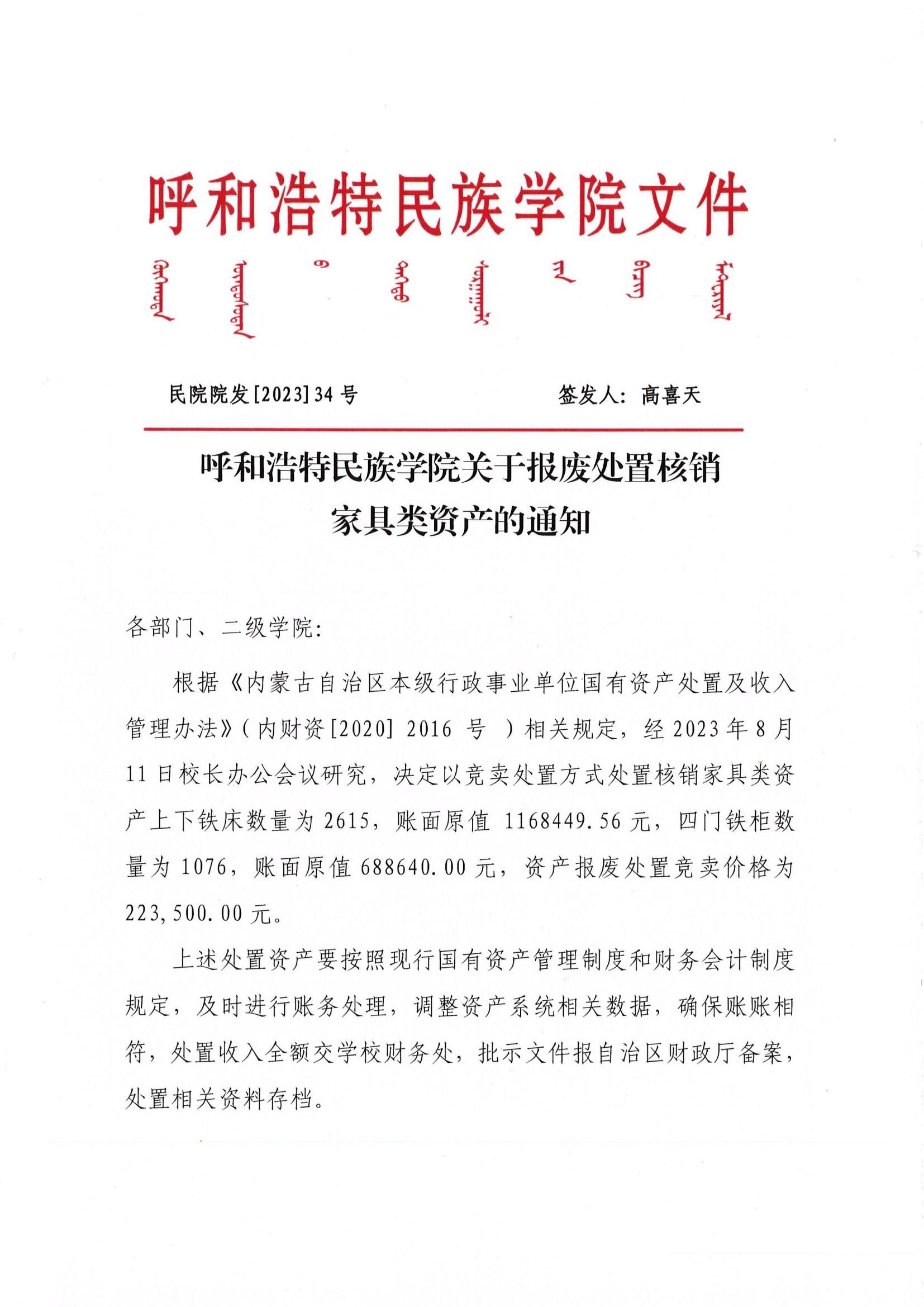 beat365英国官方网站关于报废处置核销家具类资产的通知