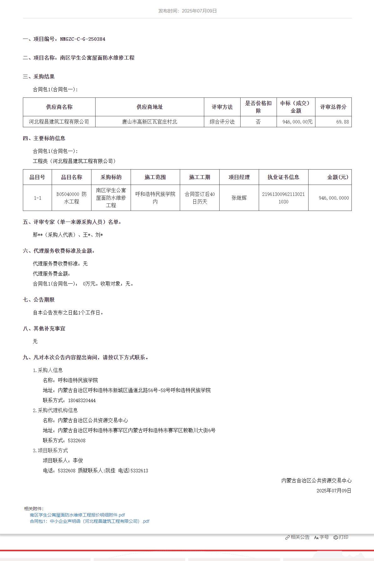 beat365英国官方网站南区学生公寓屋面防水维修工程中标(成交)结果公告