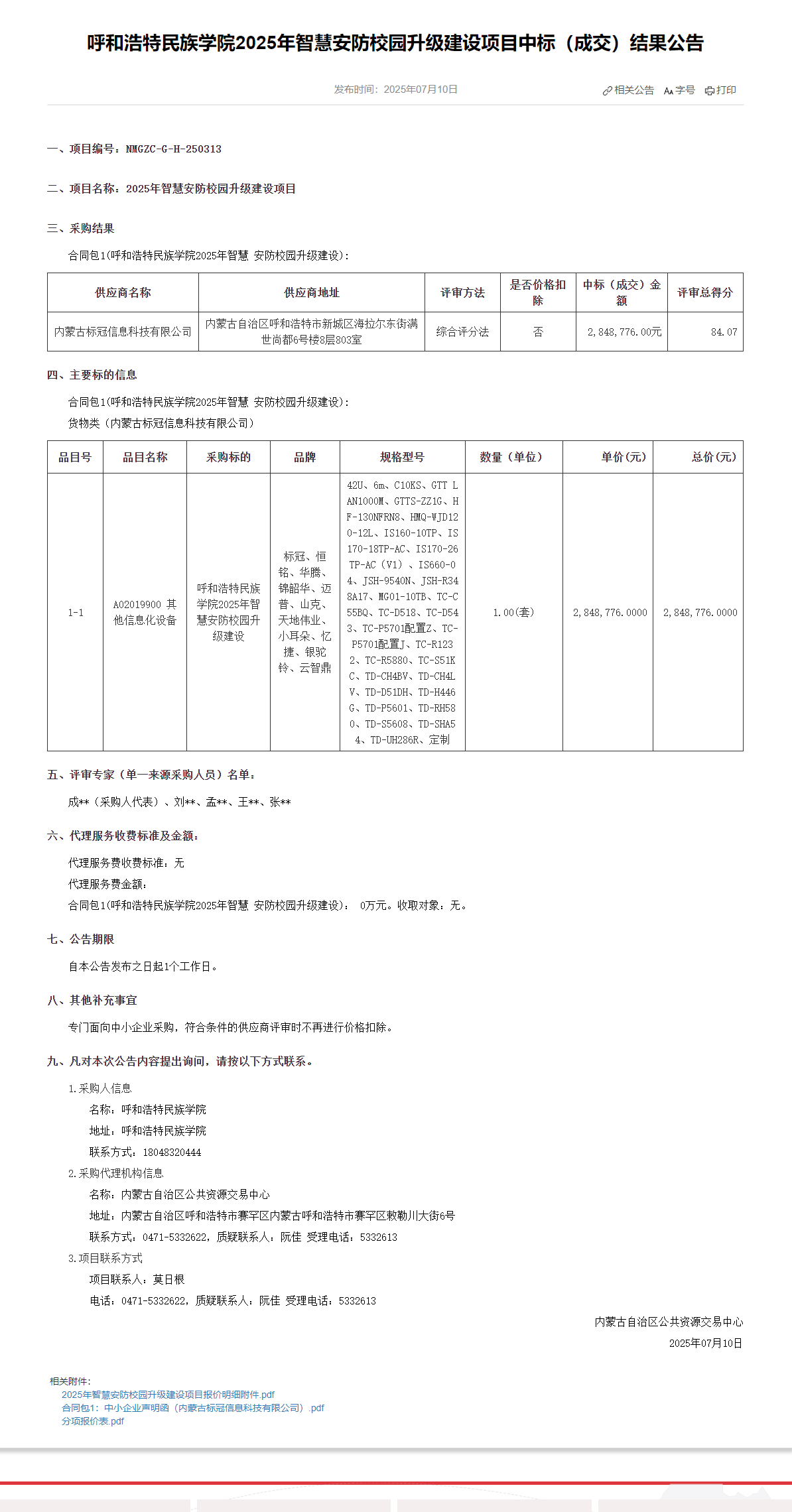 beat365英国官方网站2025年智慧安防校园升级建设项目中标(成交)结果公告
