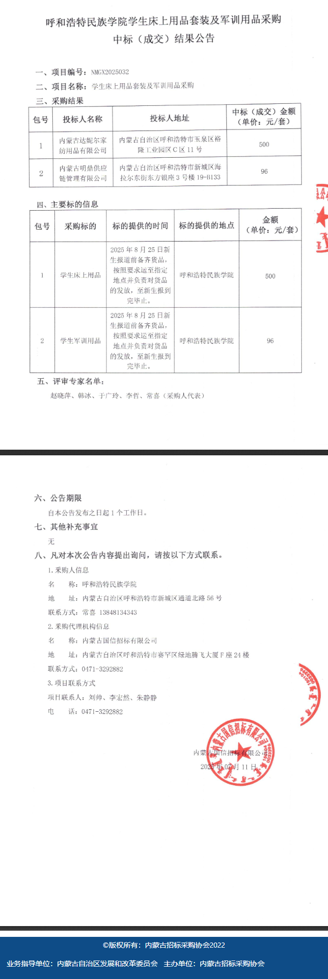 beat365英国官方网站学生床上用品套装及军训用品采购中标(成交)结果公告