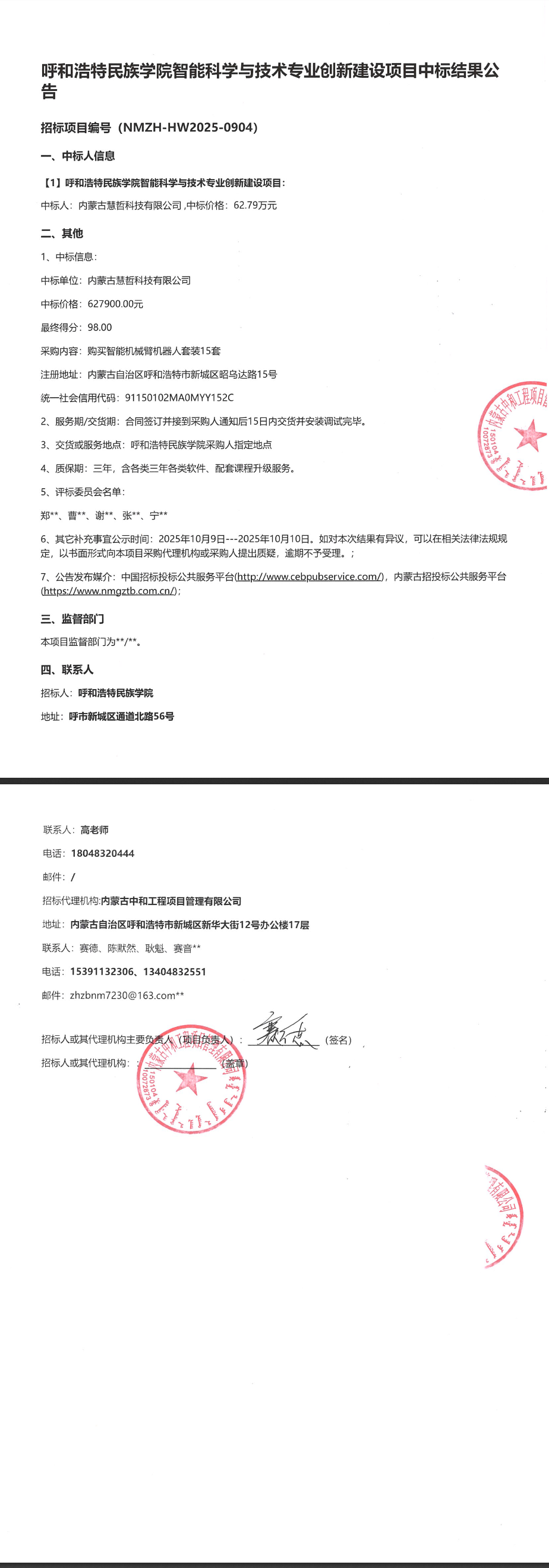 beat365英国官方网站智能科学与技术专业创新建设项目中标结果公告