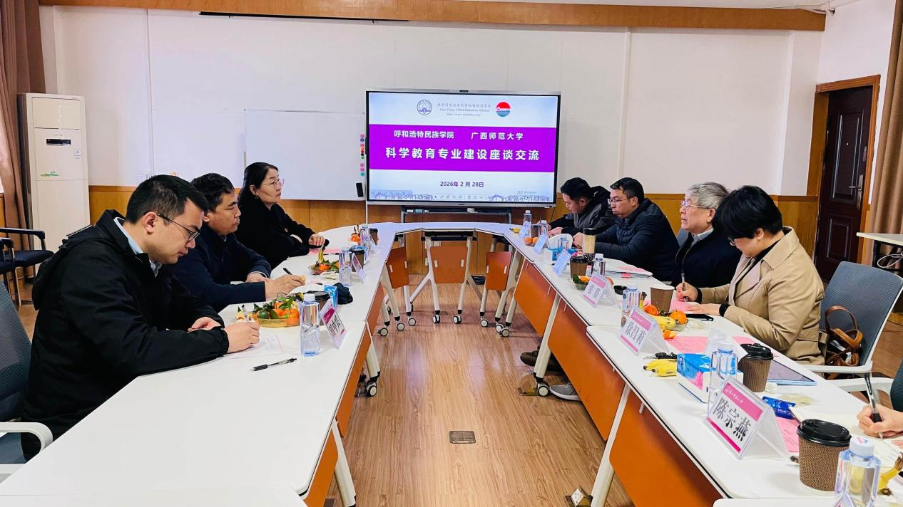 调研期间,学院团队先后参观了广西师范大学科学教育专业相关实验室,实地了解其专业创新实验以及兴华科技素质创新实践成果。随后,双方召开座谈会,广西师范大学科学教育研究所相关负责人介绍了专业发展历程、人才培养模式及学科建设经验,双方围绕科学教育专业的时代定位、师资队伍建设、人才培养目标、课程体系构建及项目化实践教学改革等核心议题展开深入交流。