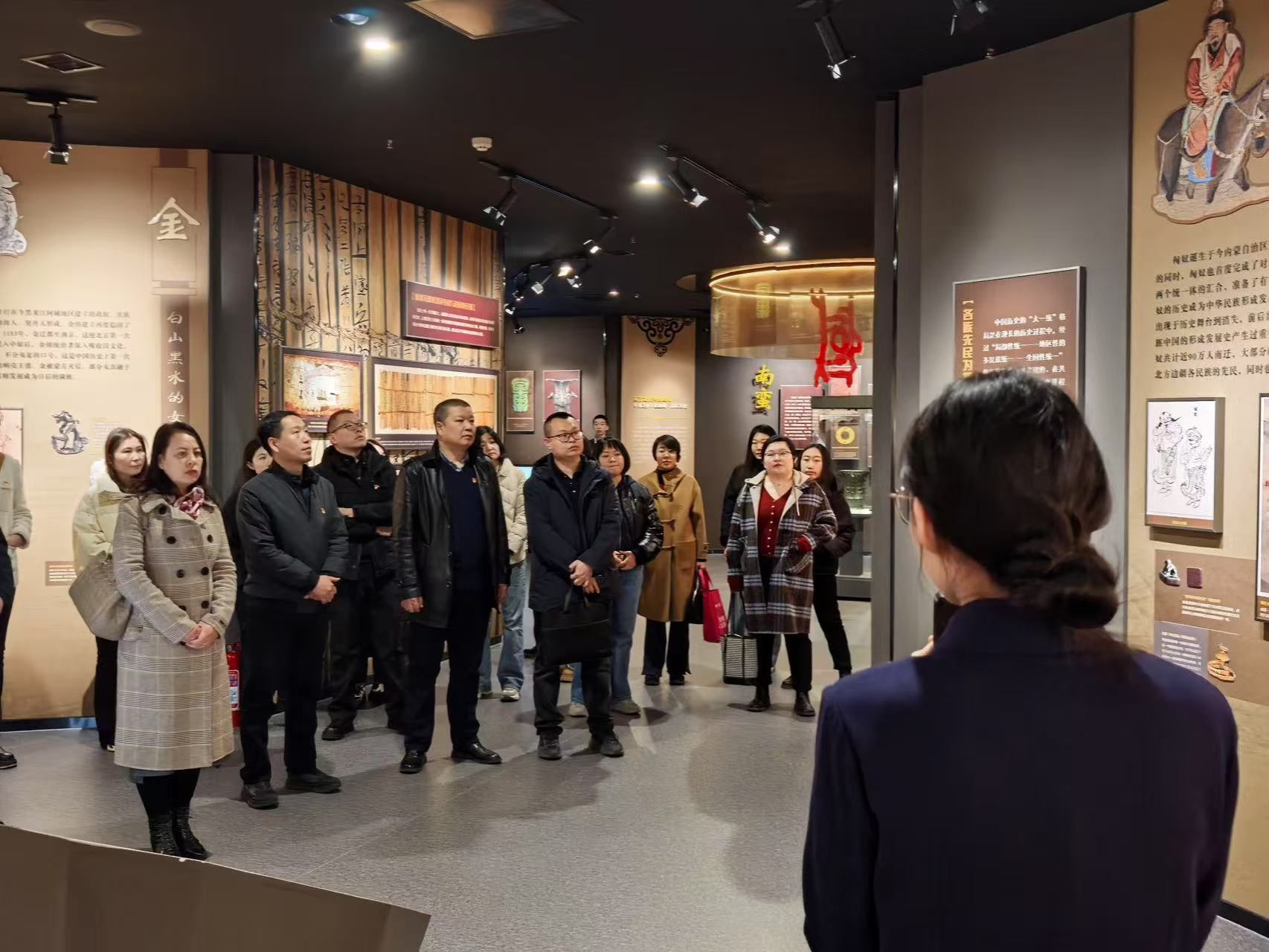 在讲解员的带领下,大家共同参观beat365英国官方网站铸牢中华民族共同体意识教育馆,全方位了解各民族交融汇聚的中华民族共同体的起源、形成和发展,从“我们从哪里来?”“我们是谁?”“我们要到哪里去?”三个部分深刻体悟中华民族从自在走向自觉、走向伟大复兴的全过程以及内蒙古各族人民长期以来守望相助、团结奋斗的繁荣景象。