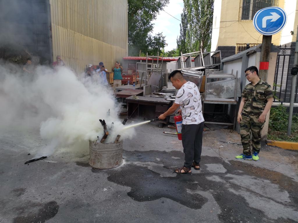 活动首先邀请专业老师以学校餐饮服务中心实际情况结合相关案例为全体职工讲解消防安全知识,全体参会职工认真听讲牢记相关重点内容。会后,全体职工在保卫处的指导下开展灭火器实地操作活动。